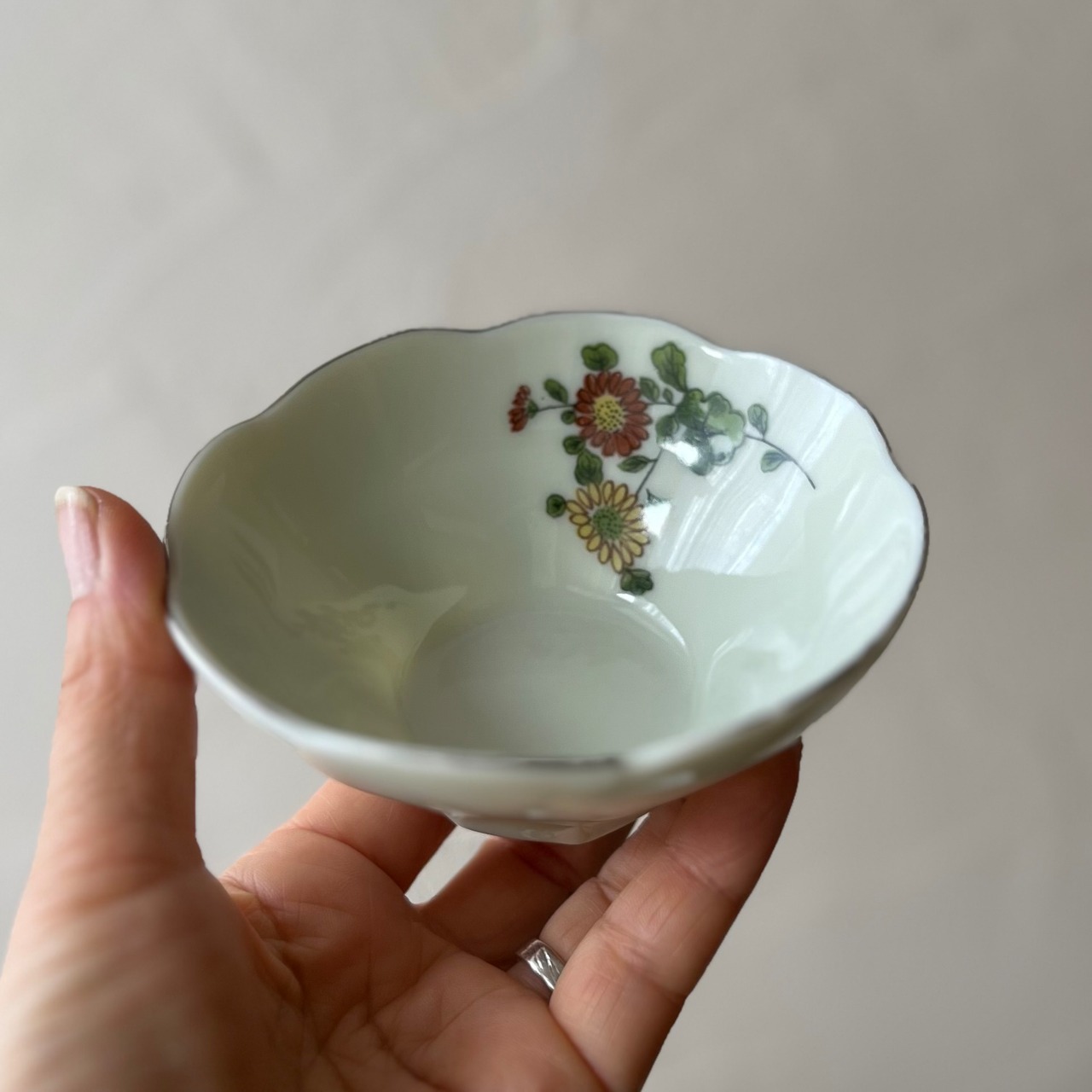 花型の縁にはシルバーのラインが引かれています。