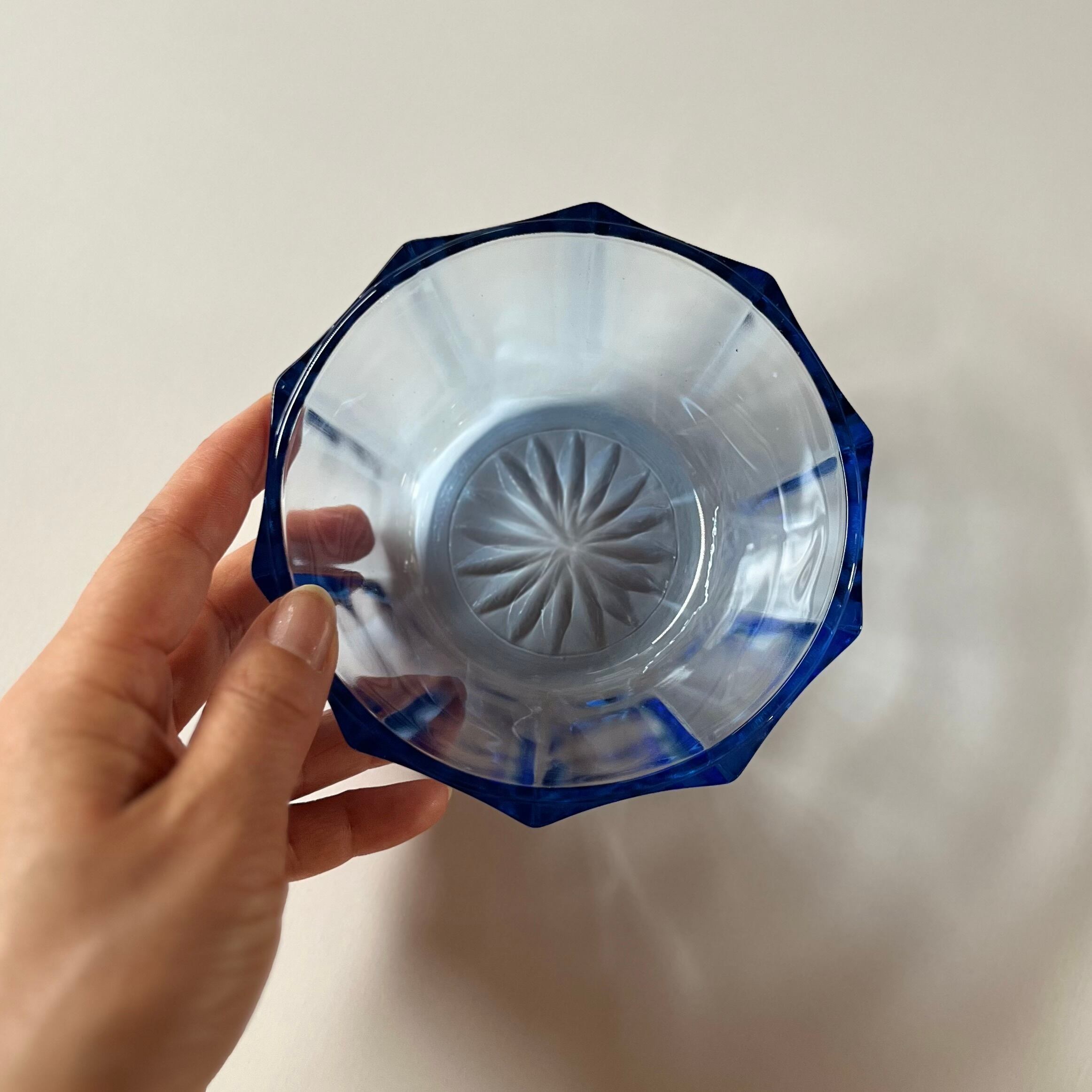 【訳アリ】レトロ ガラスの器 ブルー 10角