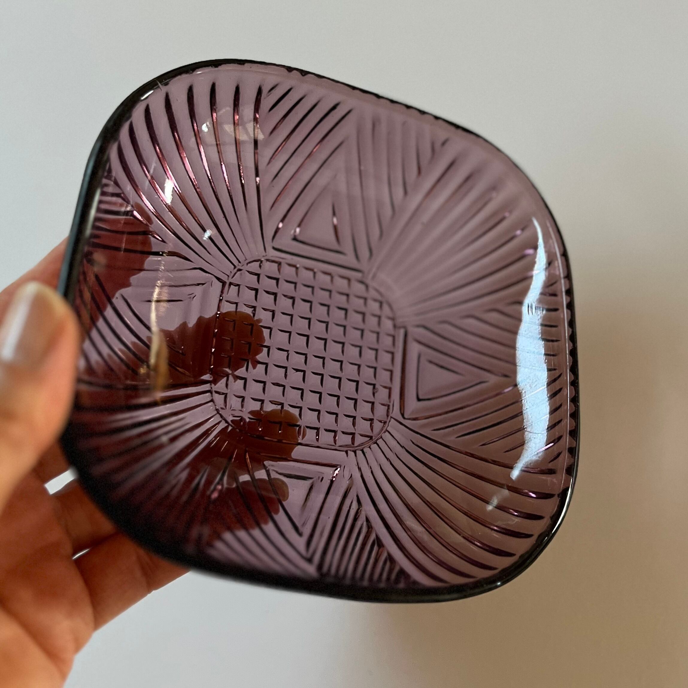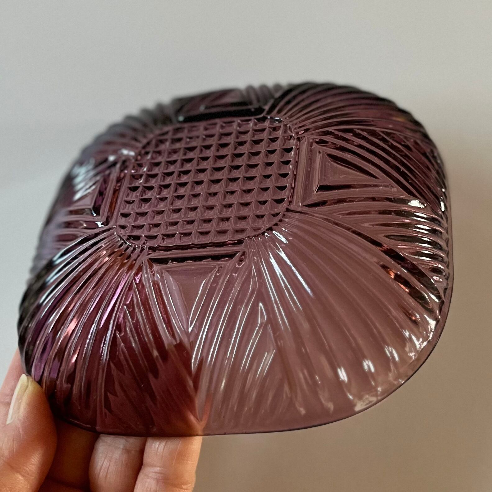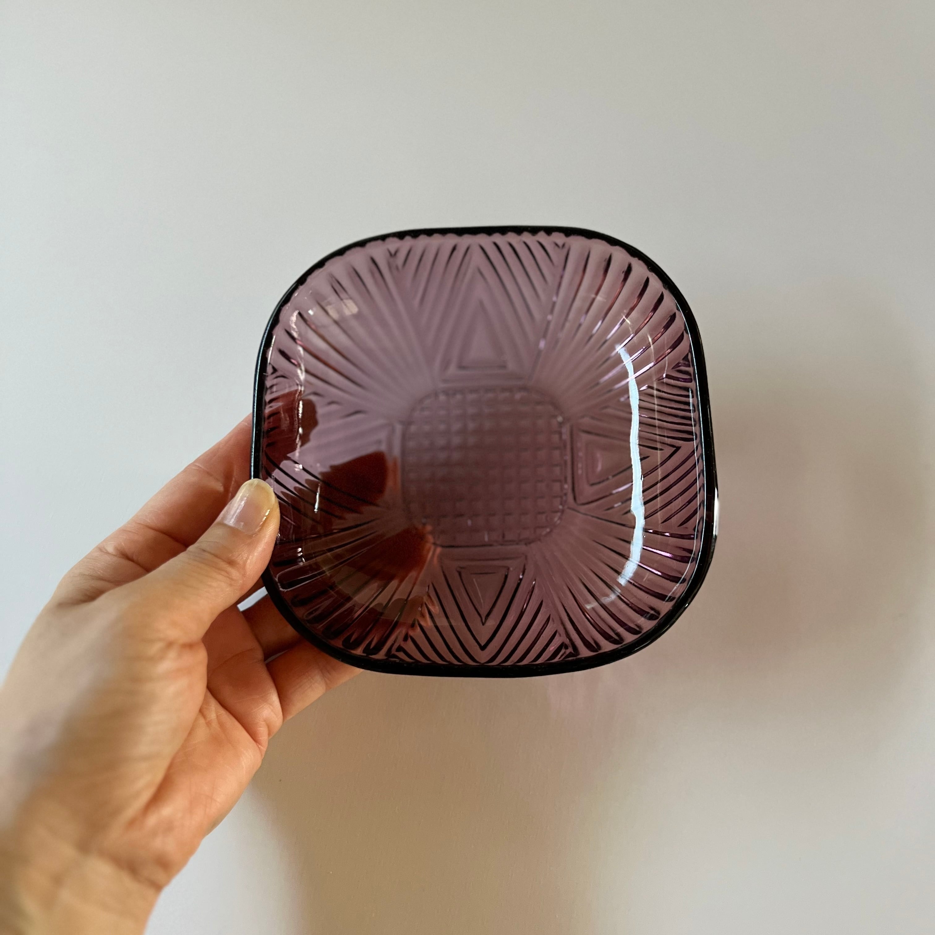 【レトロガラスの器 浅型 四角 カット 紫色】