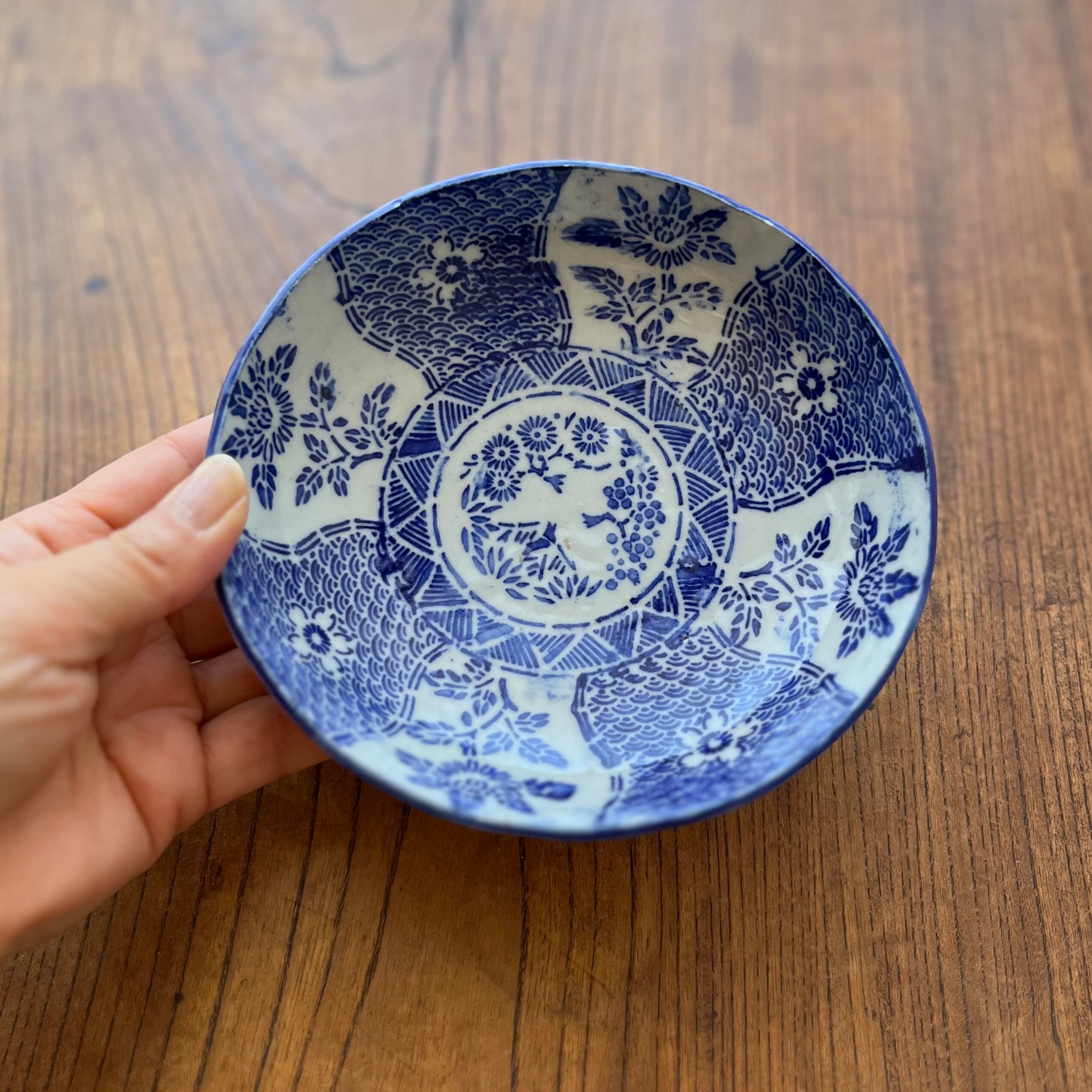 ・明治期に手作りされた古いものです。印判特有の印刷のズレや擦れ、にじみ、また多少の窯きず(焼成時にできた傷)や歪みなどがございます。