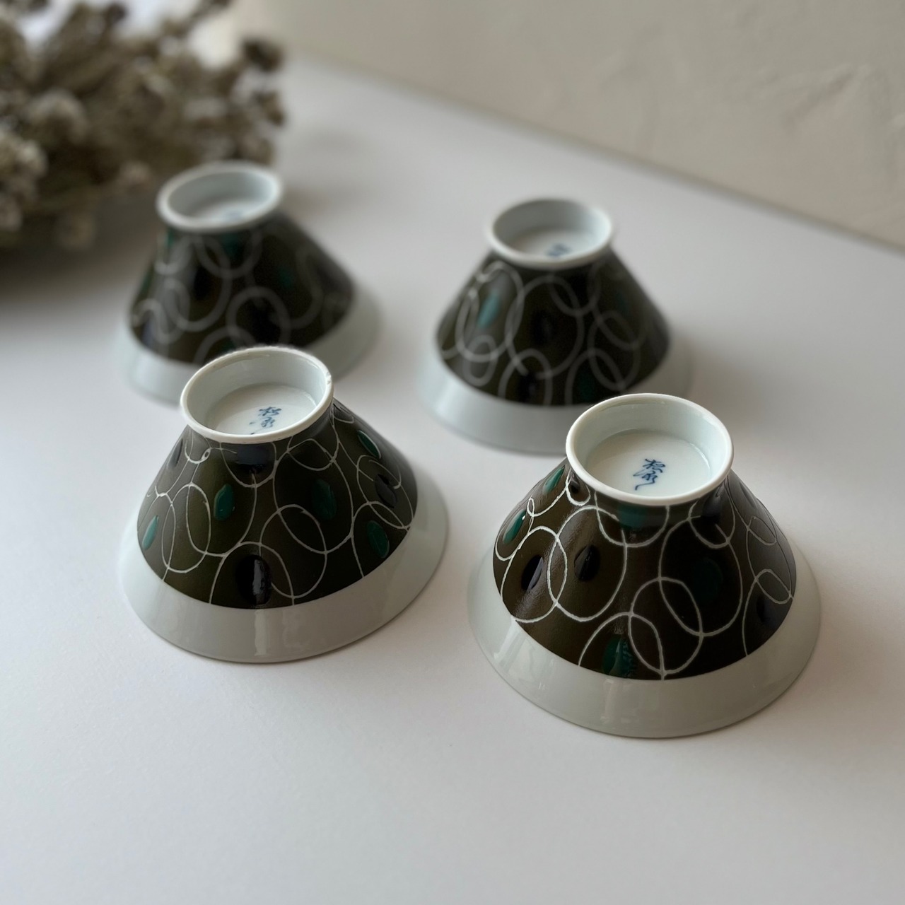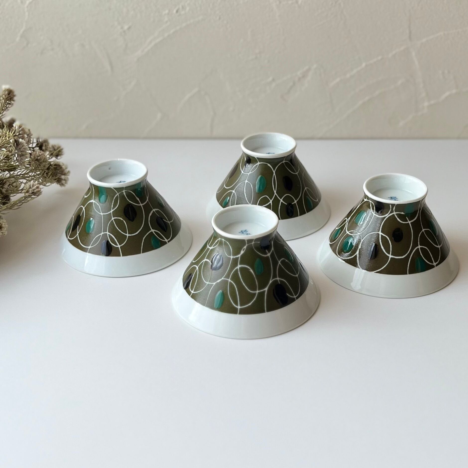 レトロモダン 湯呑 小鉢 モスグリーン ポップな4個セット