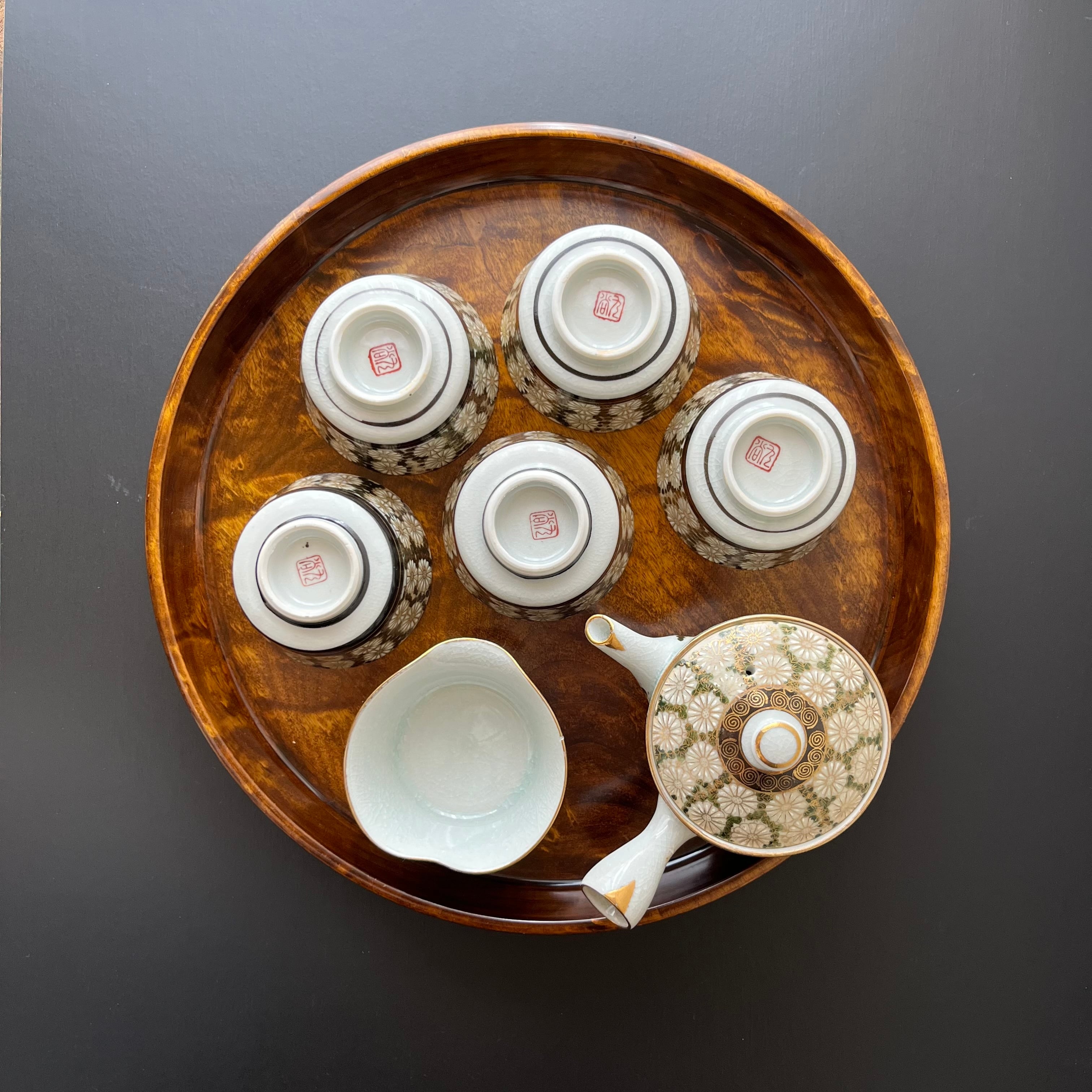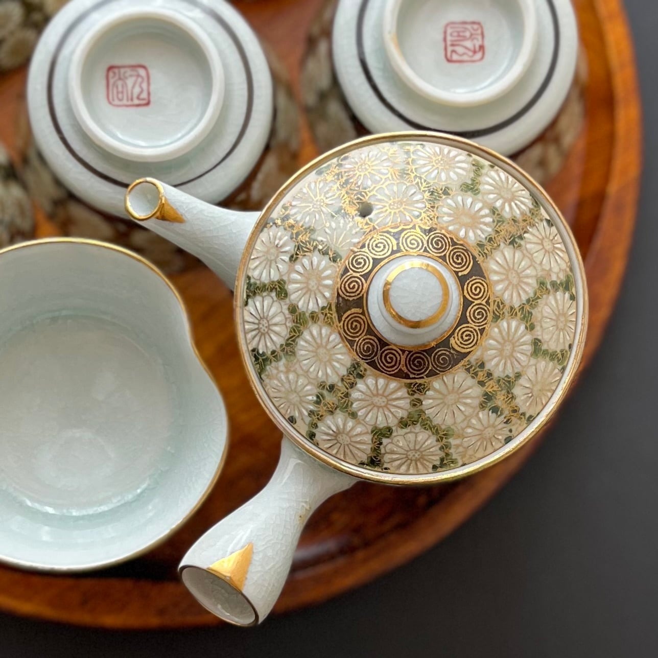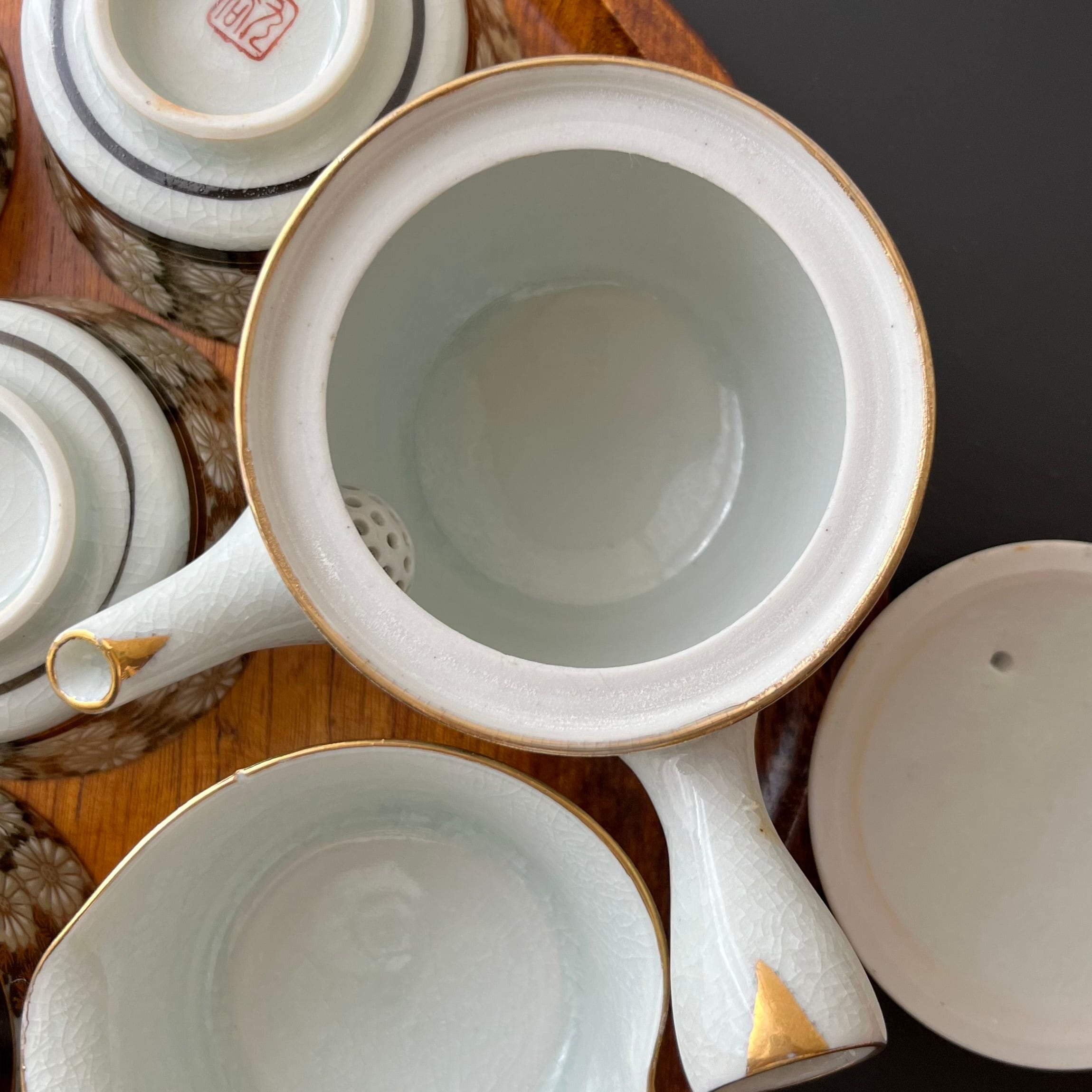 九谷焼 茶器7点セット 菊尽くし 金彩 貫入が素敵