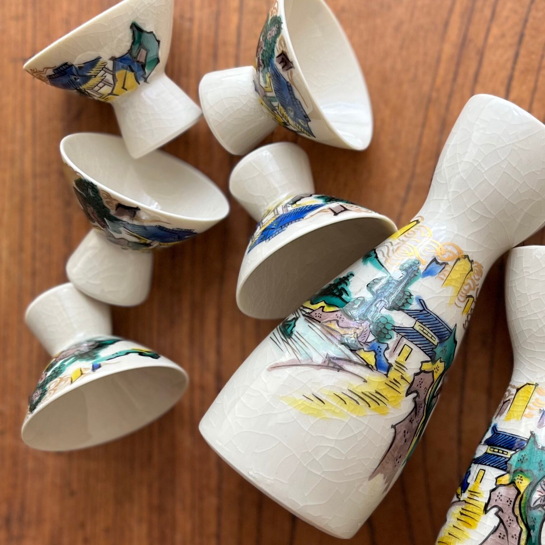 九谷焼 酒器セット 楼閣山水図 金斗雲 金彩