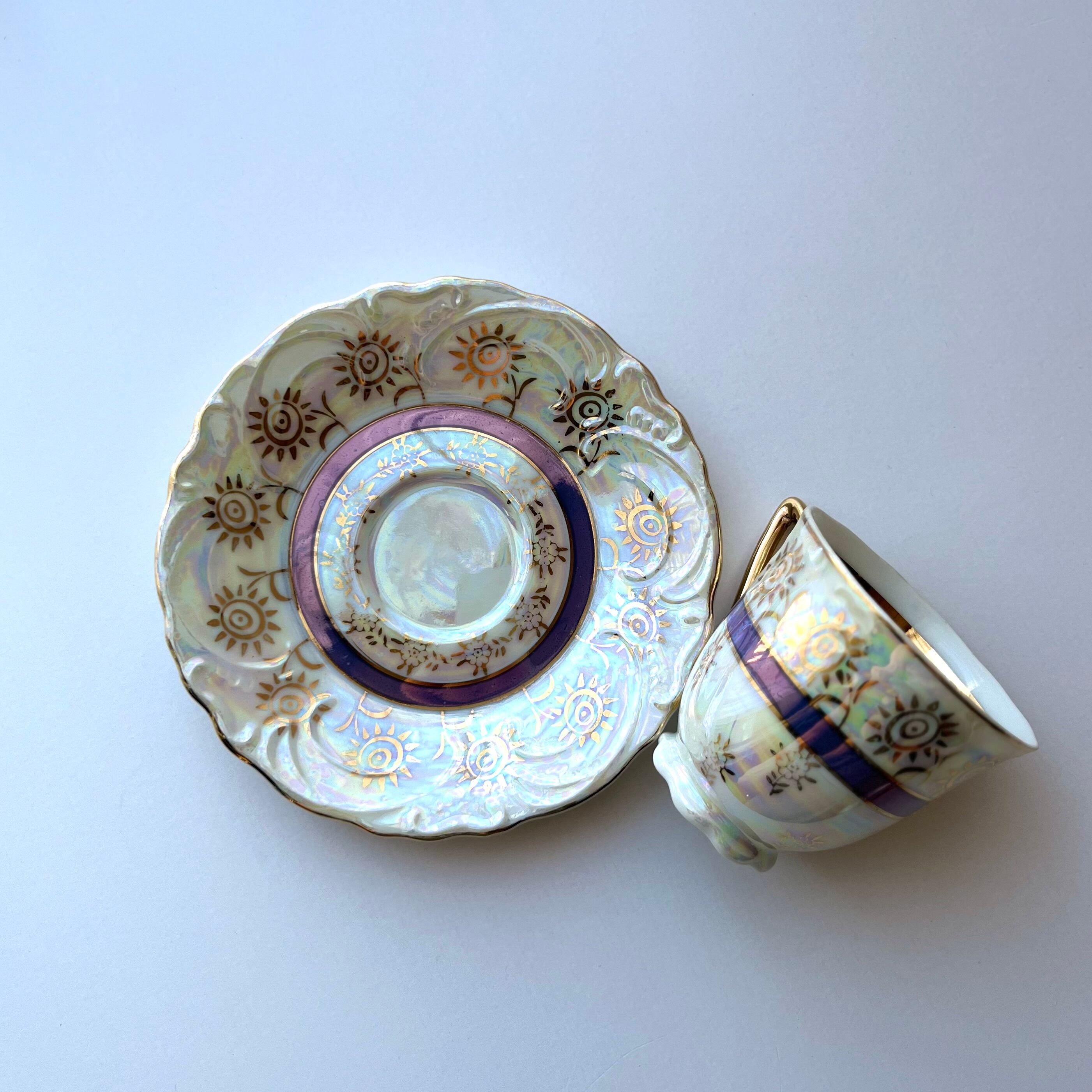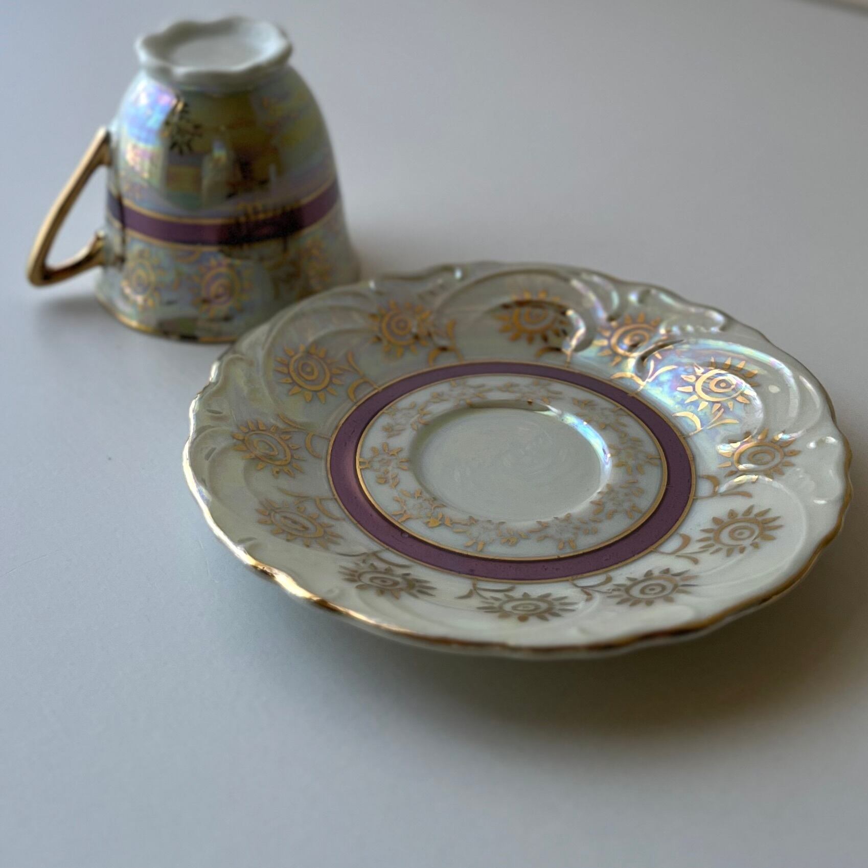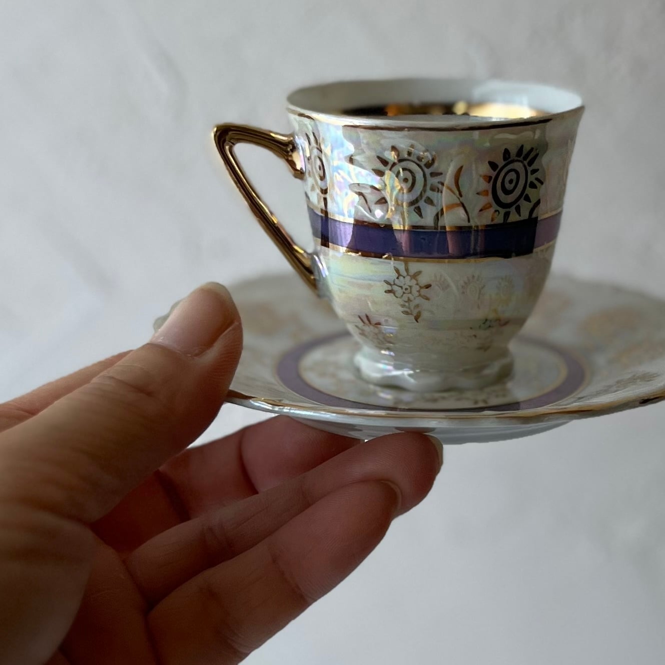 ラスター彩◆デミタスカップ ビンテージ 金彩 パープルライン