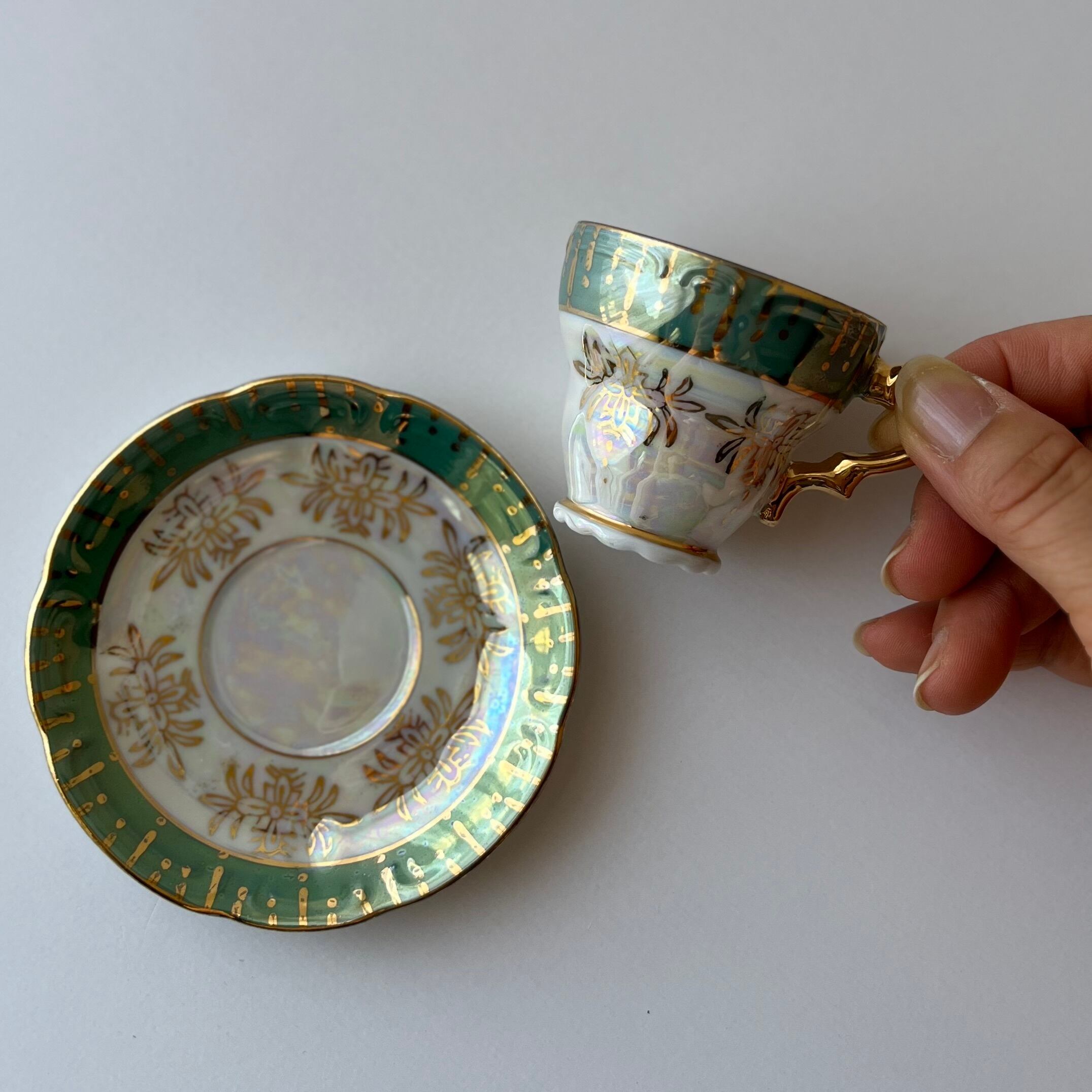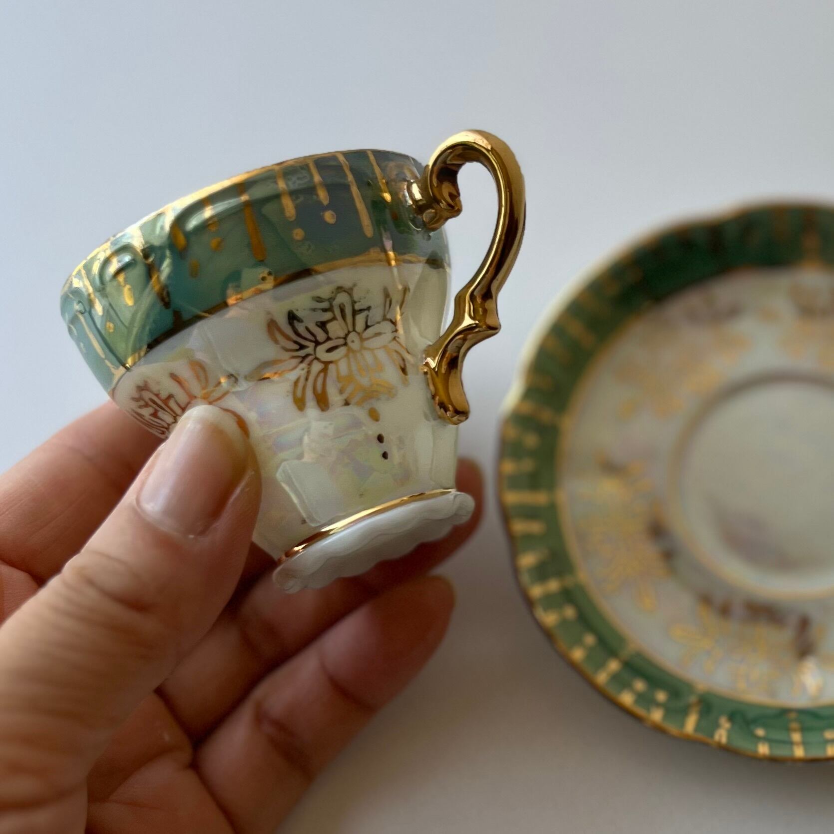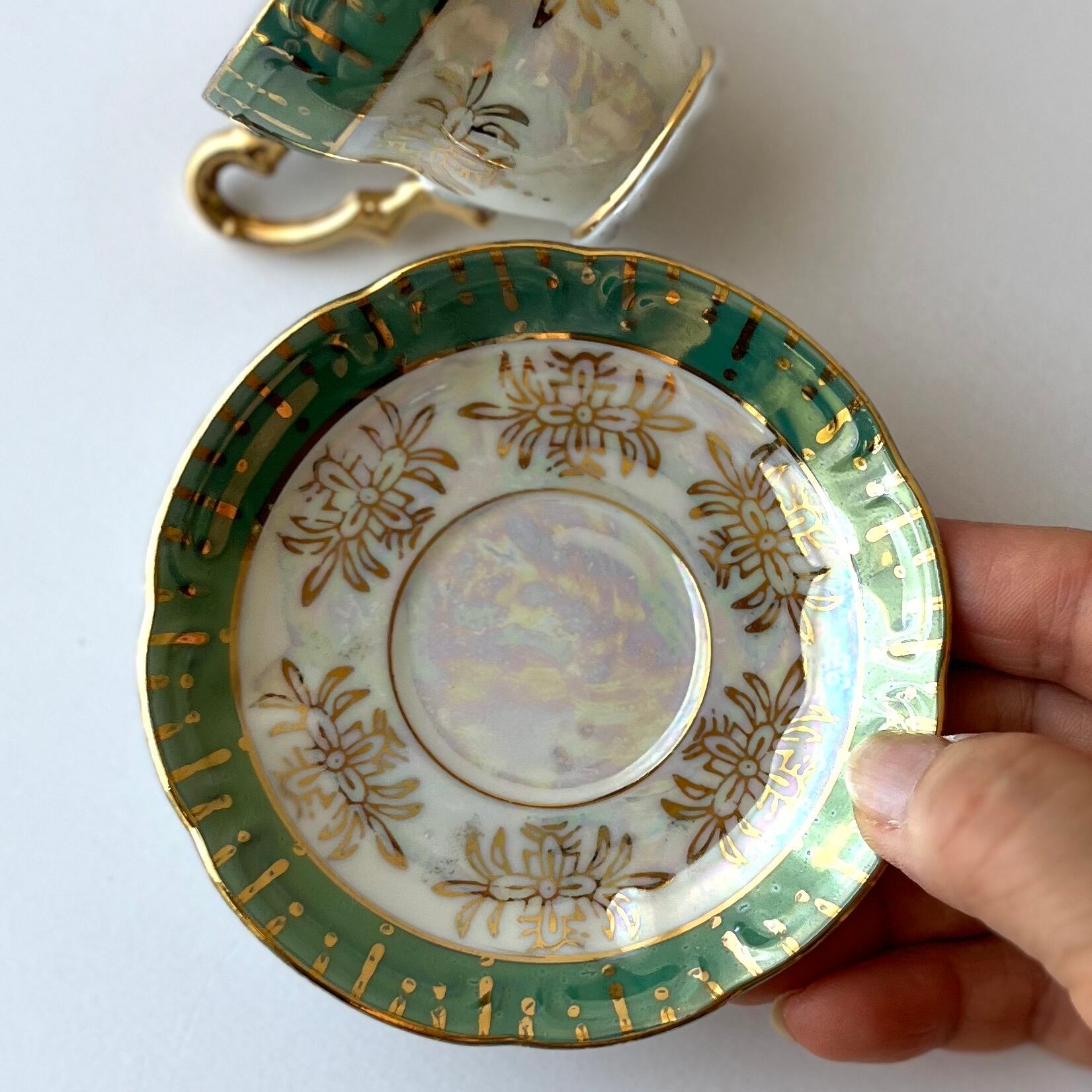 ラスター彩◆デミタスカップ ビンテージ 金彩 エメラルドグリーン