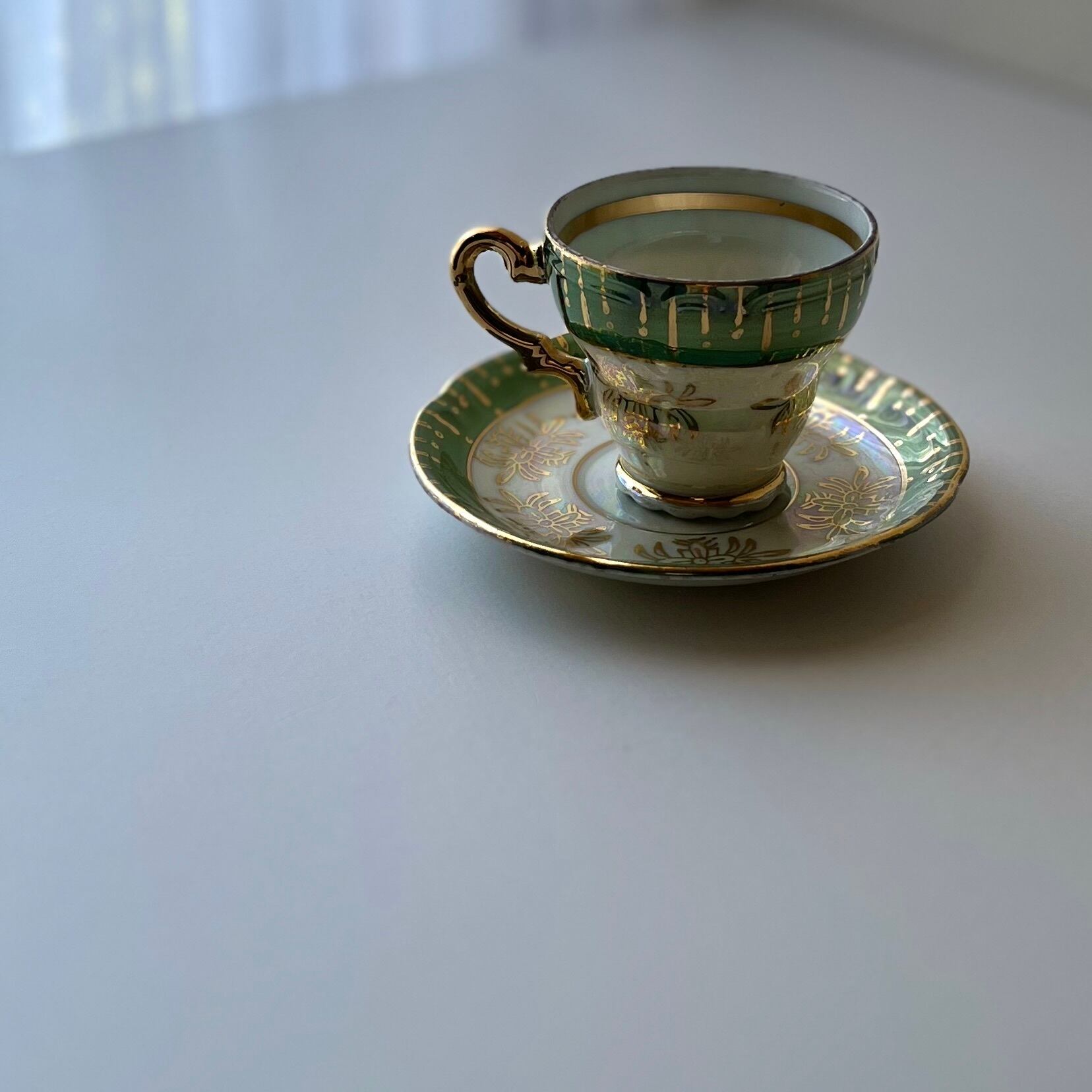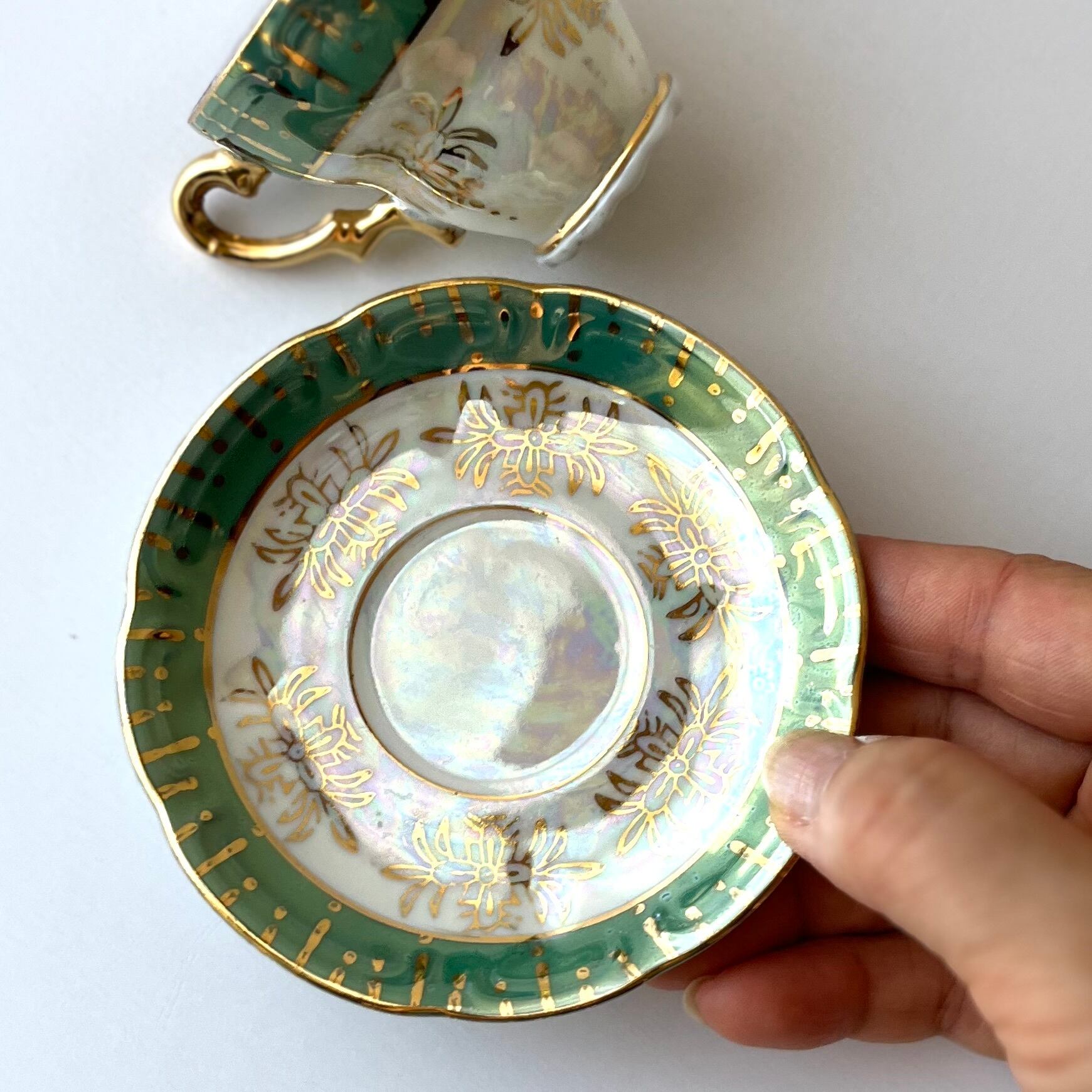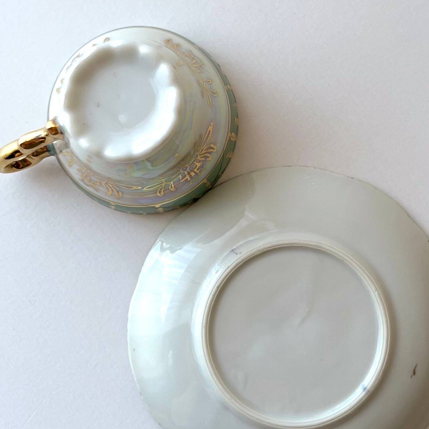 ラスター彩◆デミタスカップ ビンテージ 金彩 エメラルドグリーン