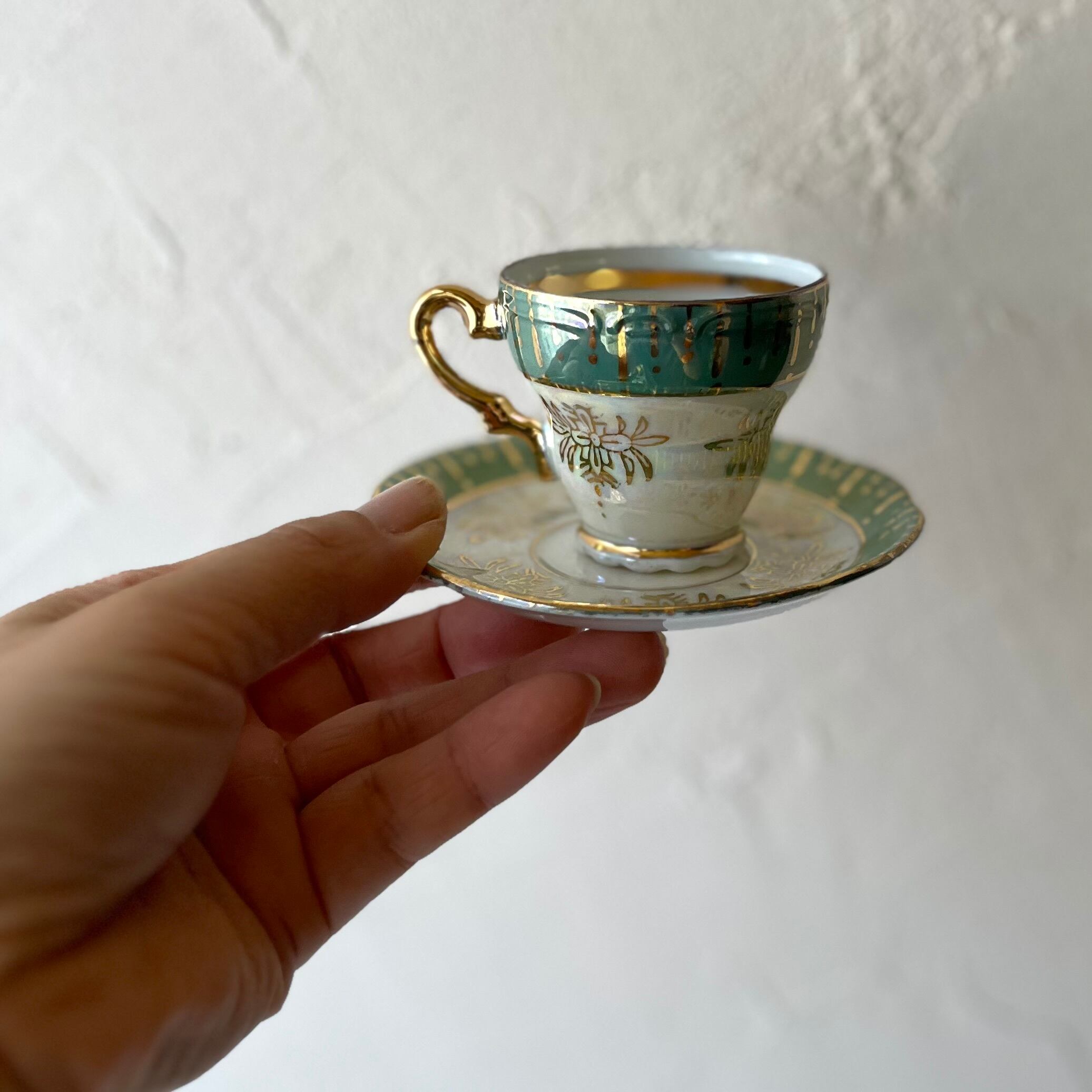 【ラスター彩◆デミタスカップ ビンテージ 金彩 エメラルドグリーン】