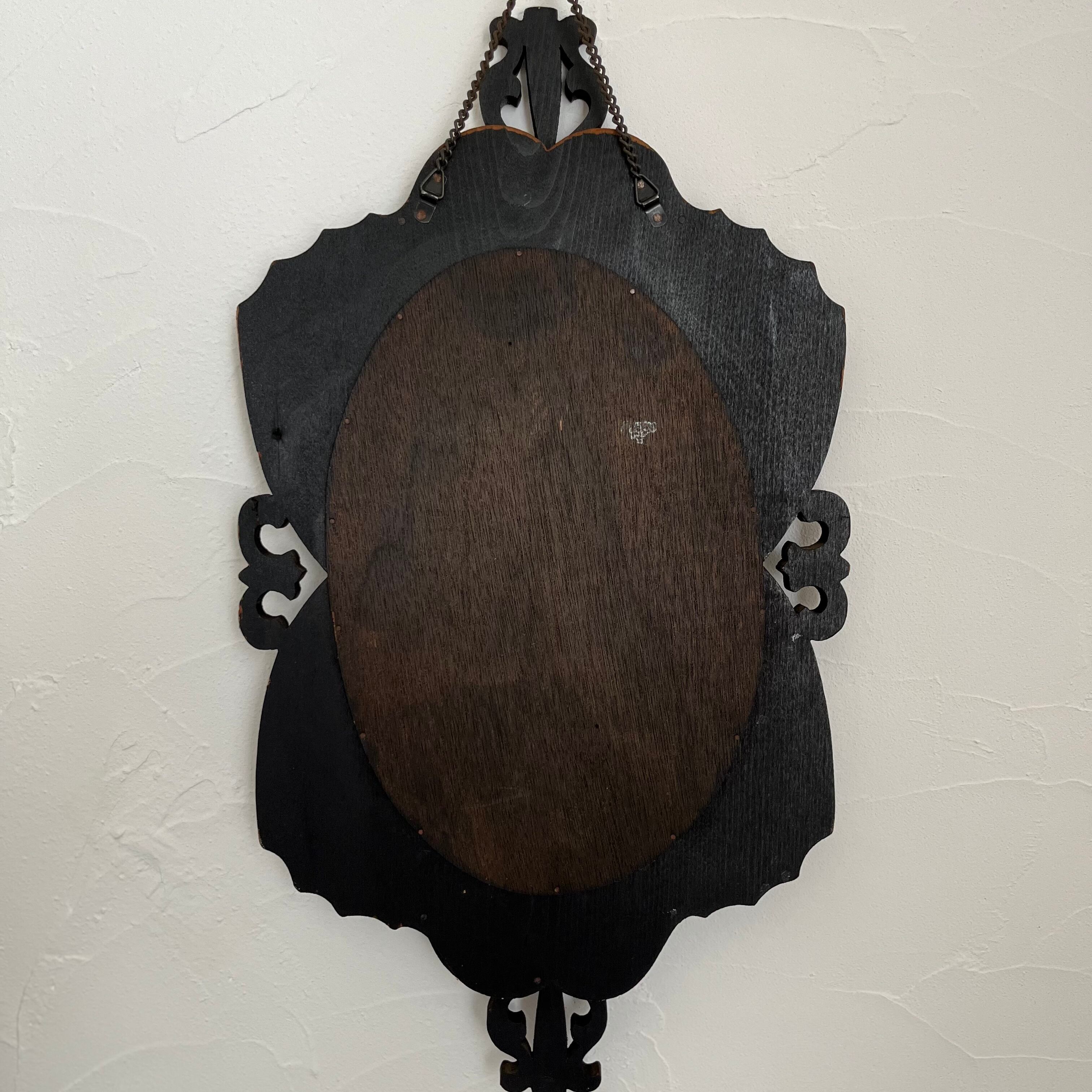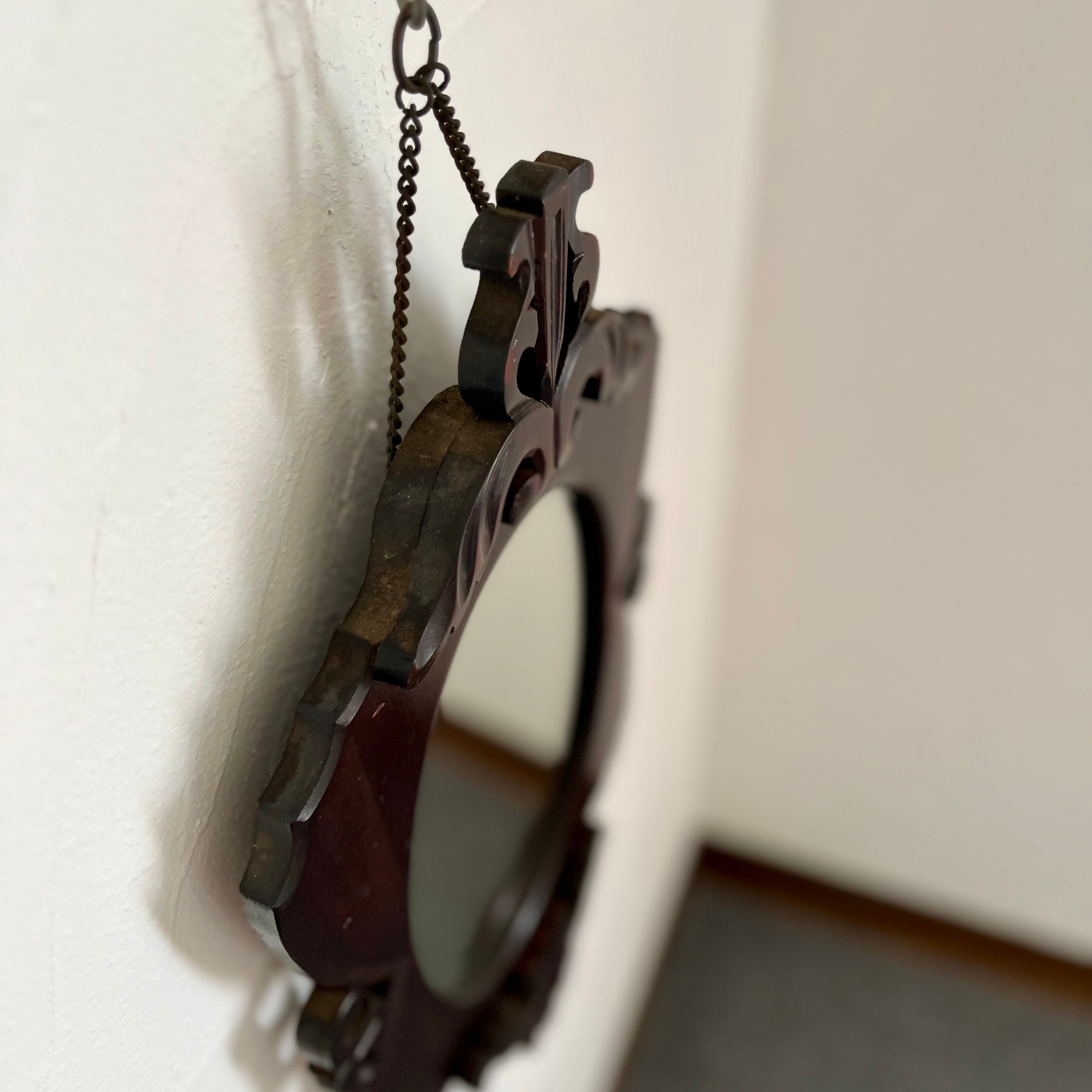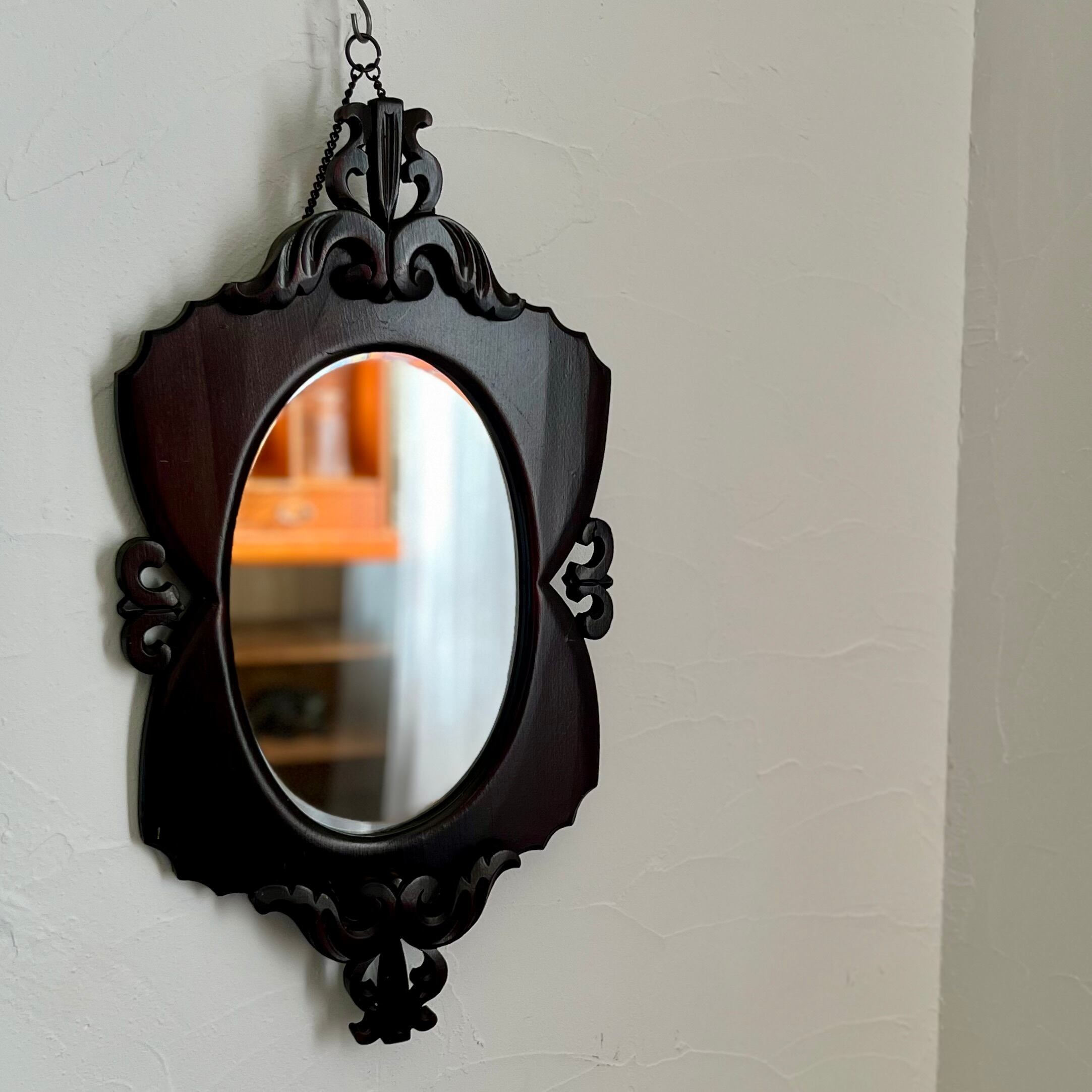 【木製装飾鏡 壁掛け◆レトロ ビンテージ 杢目】