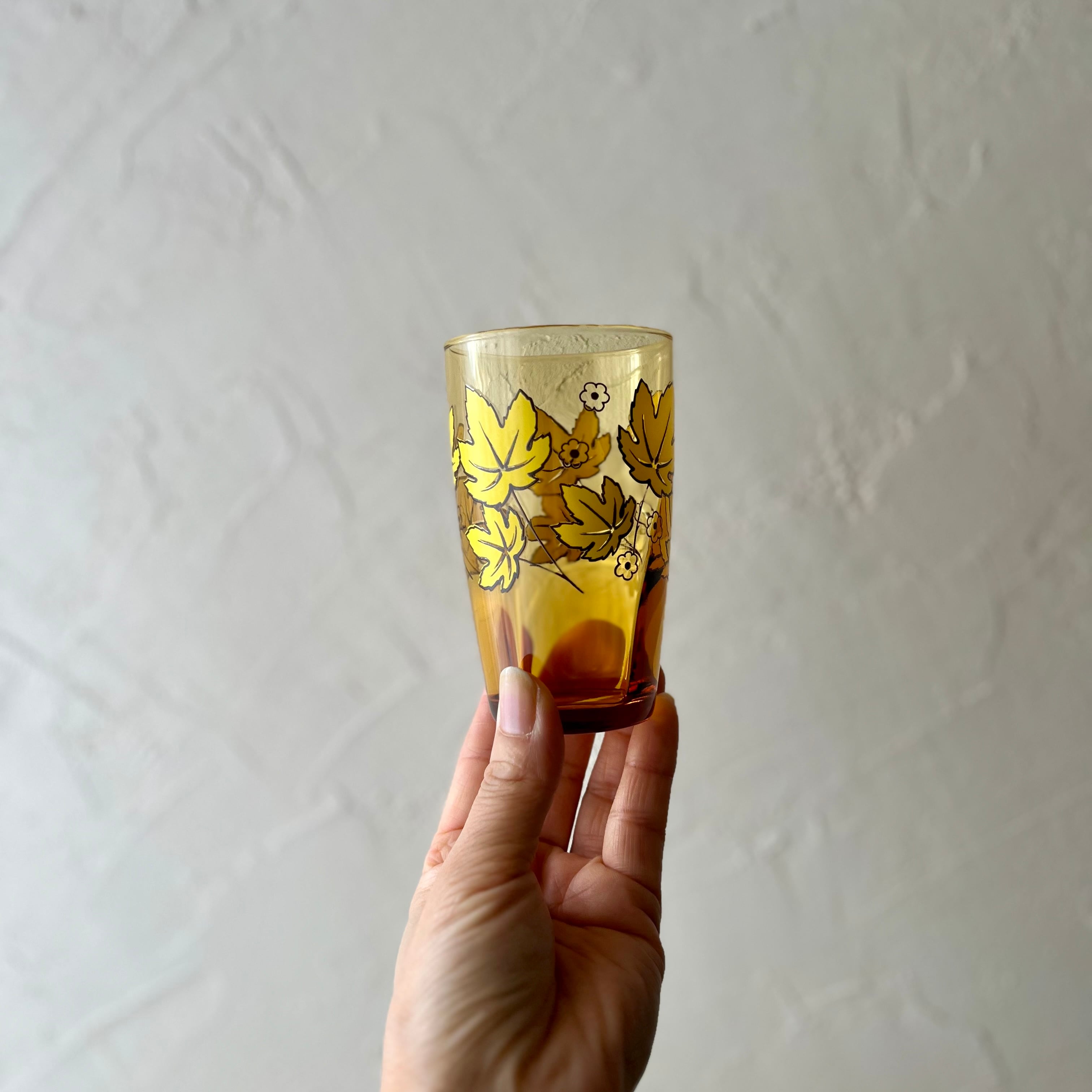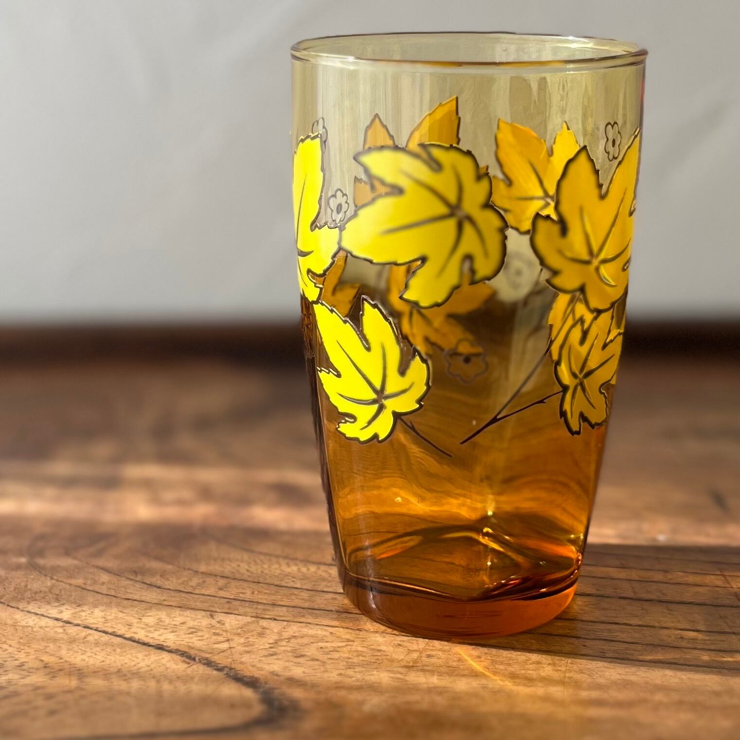 【黄色いモミジのグラス 飴色ガラス レトロ◆アデリア】