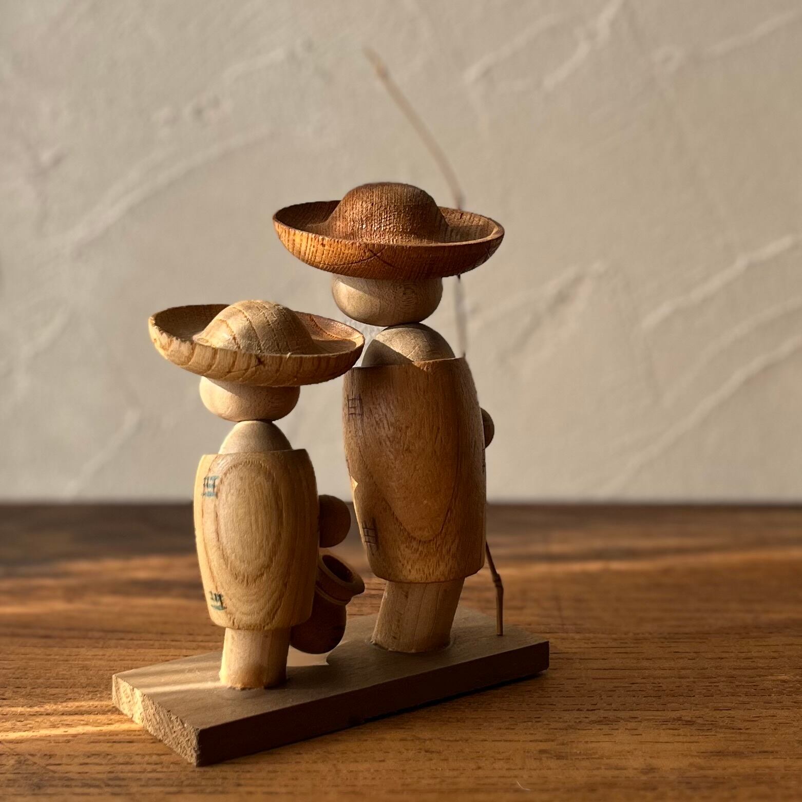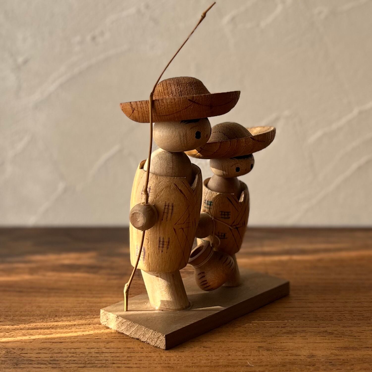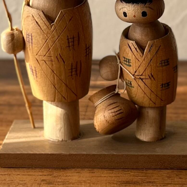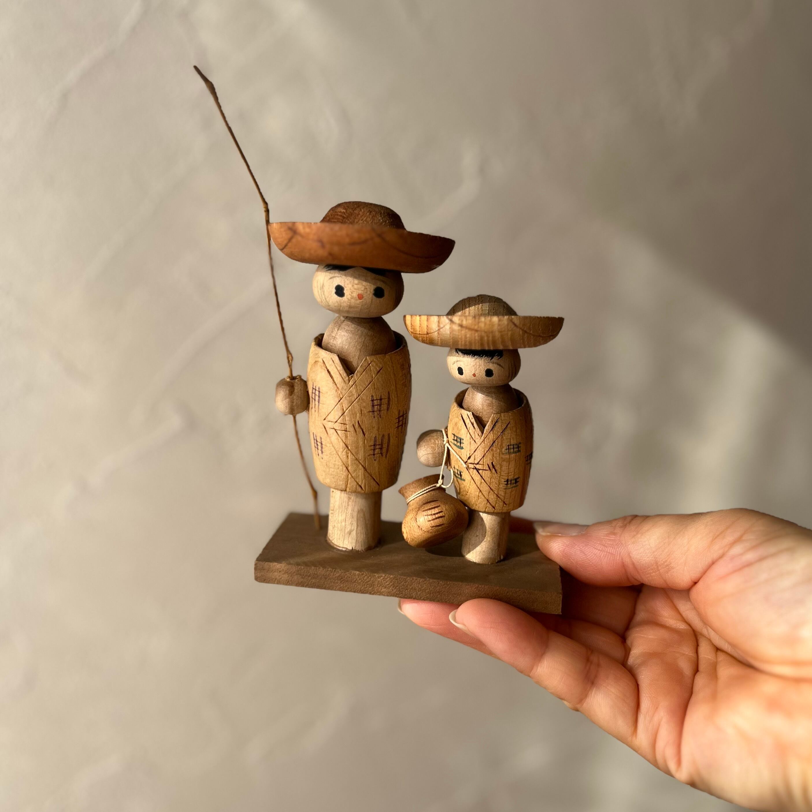 【魚釣りの兄弟◆木製品 民芸品 小さなコケシ】