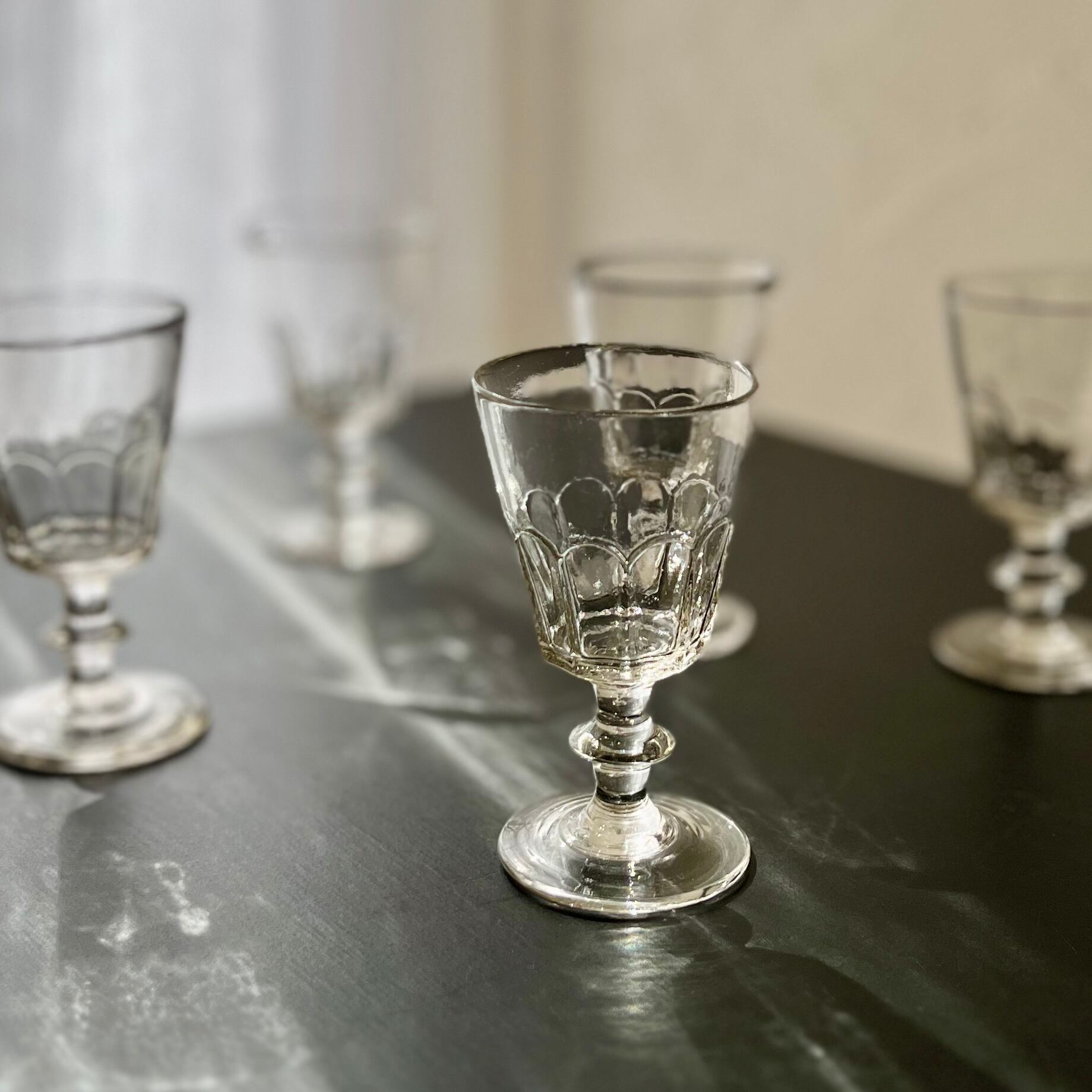 ・5客のご用意がございますが、それぞれに気泡や不純物の混入、歪みやガタツキのある個体もございます。古いものの風合いとしてご容赦くださいませ。