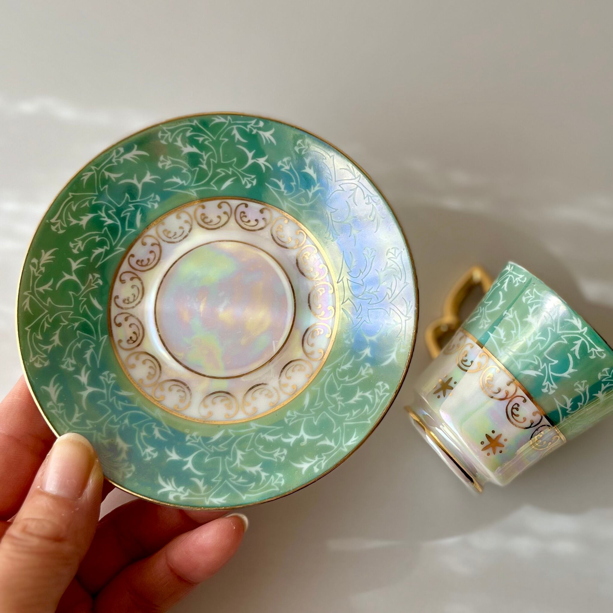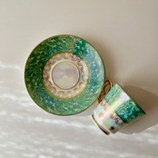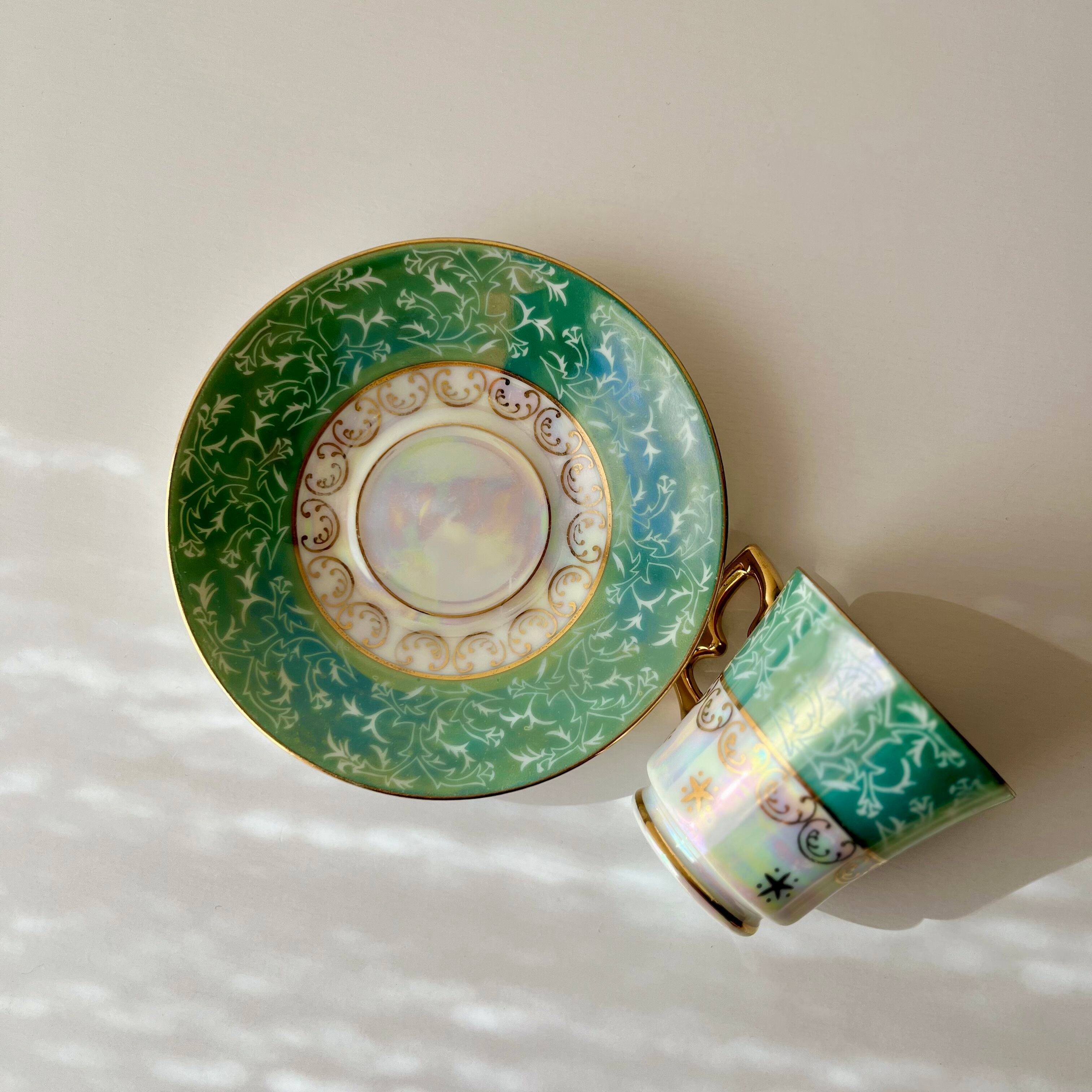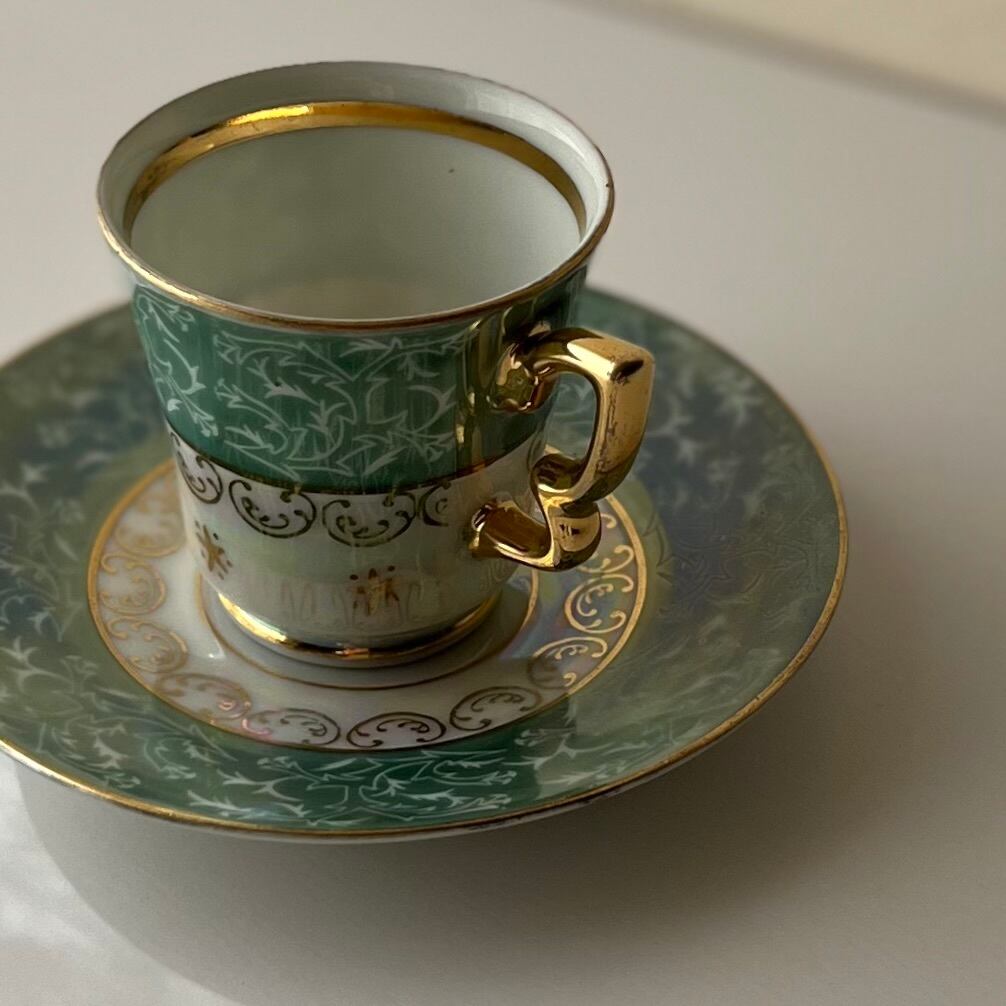 ラスター彩◆デミタスカップ ビンテージ 金彩 ライトグリーン