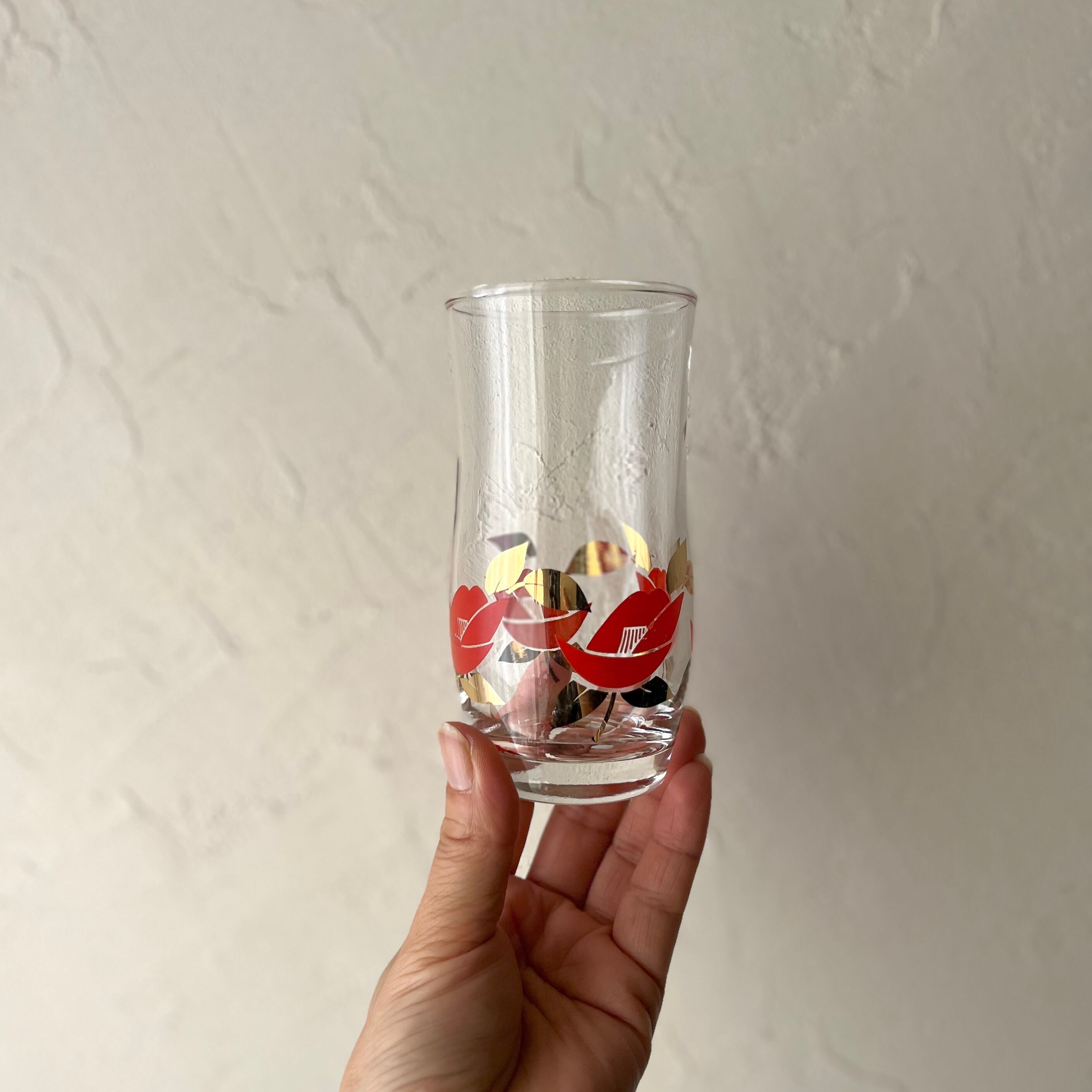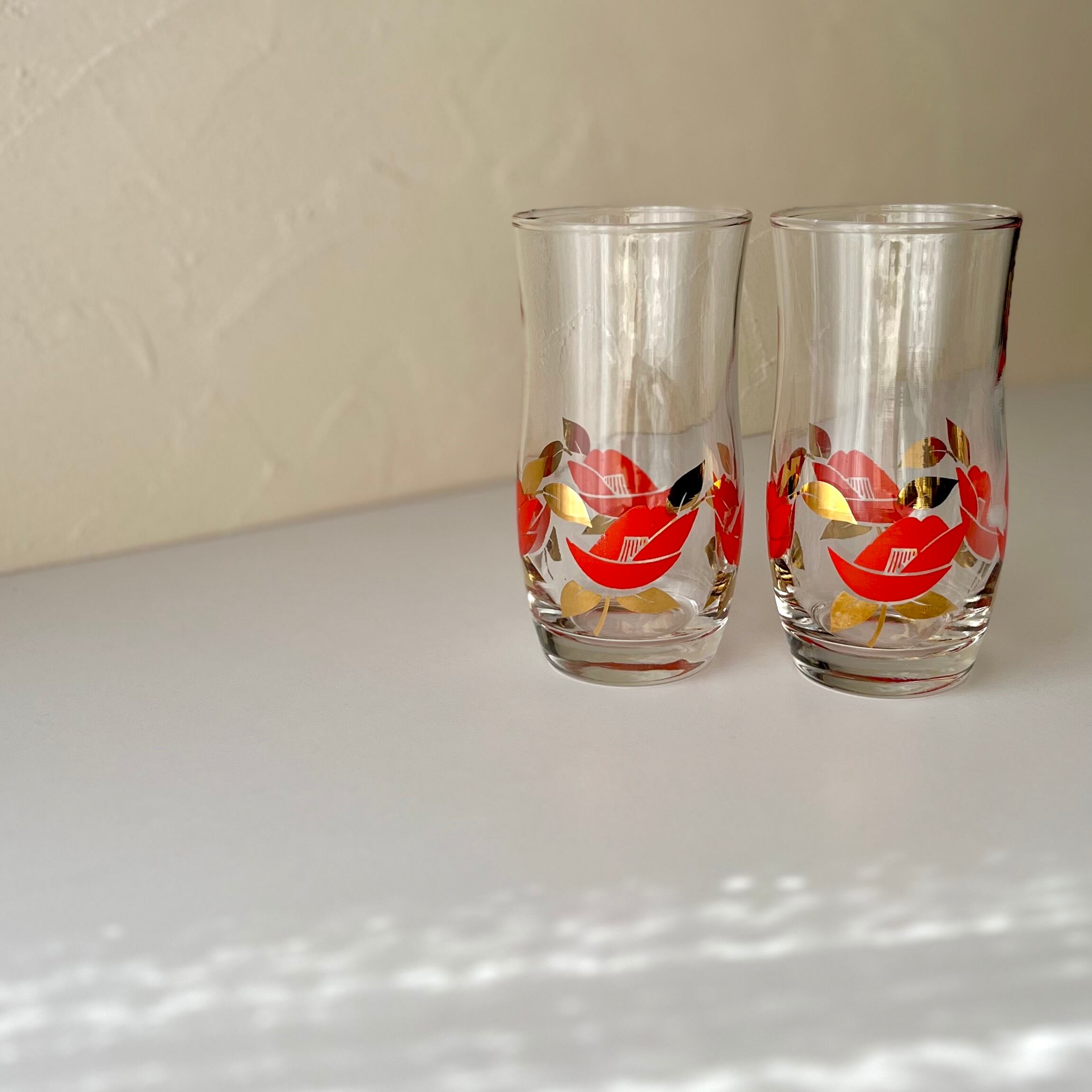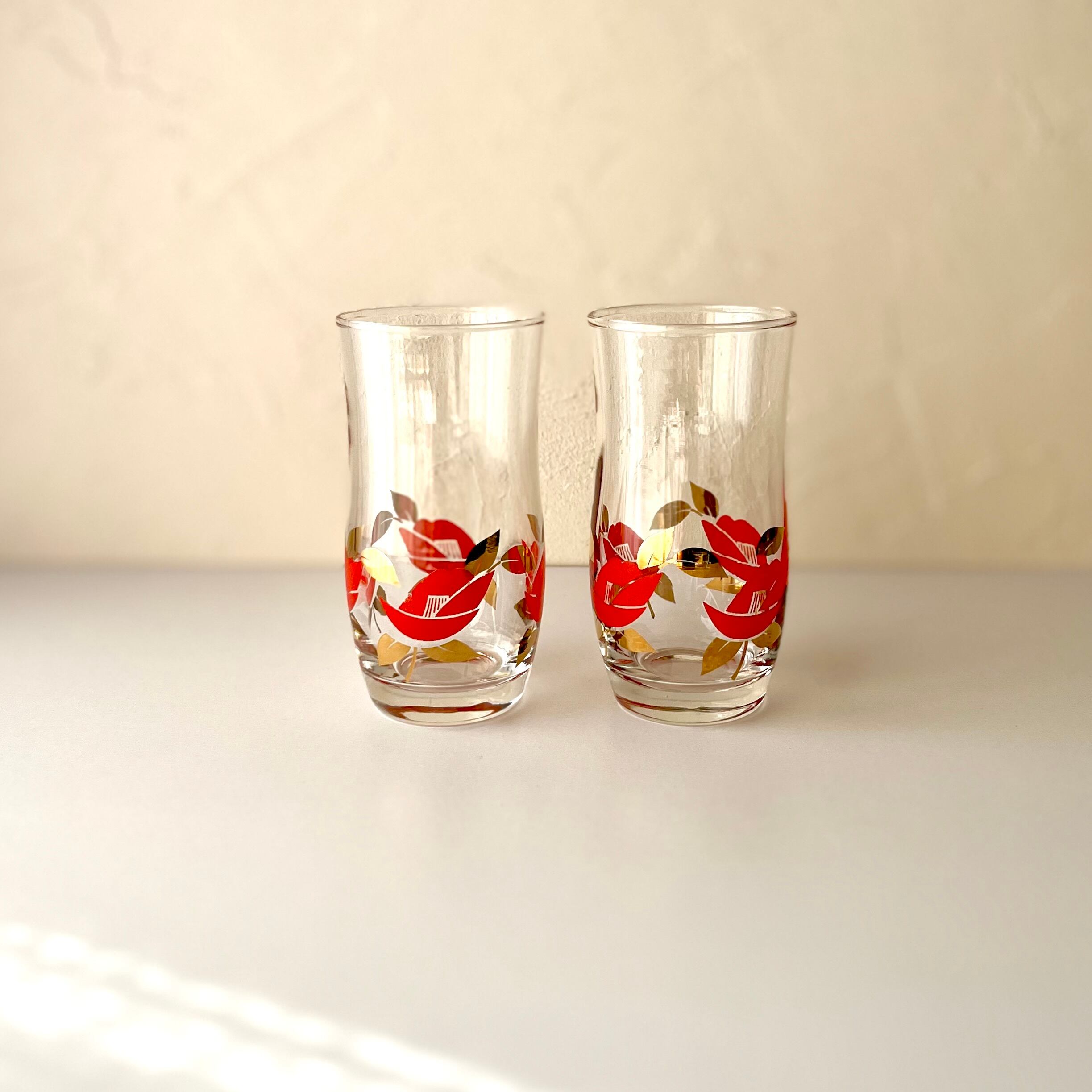 【椿のロンググラス 2個セット 金彩◆レトロ】