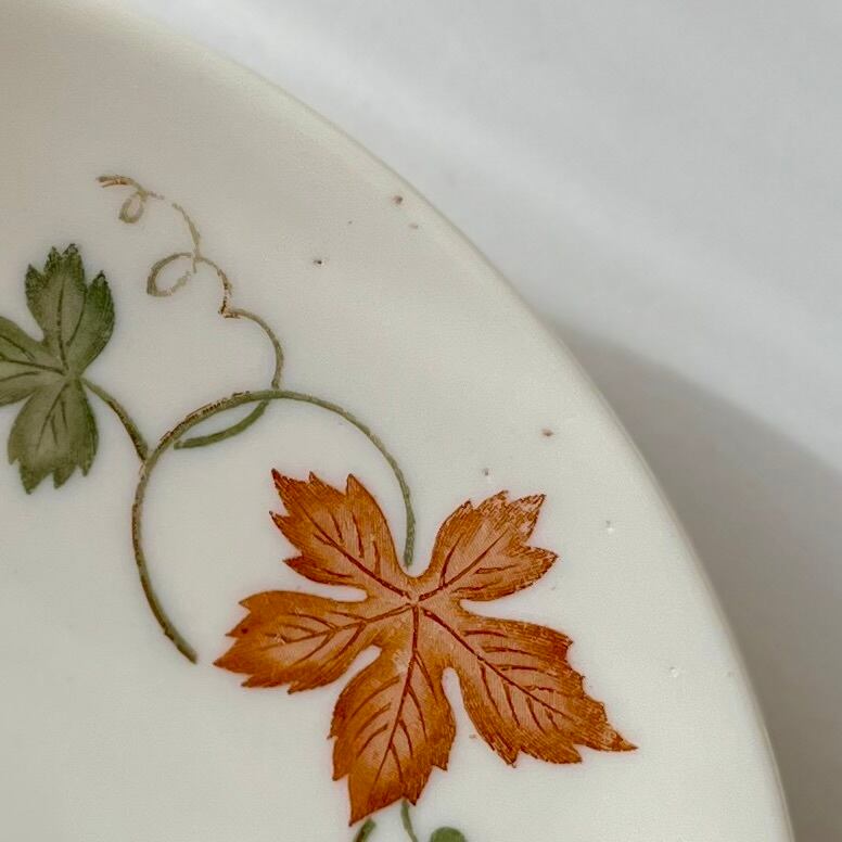 緑色と橙色の葡萄の葉が縁どられたプレート。