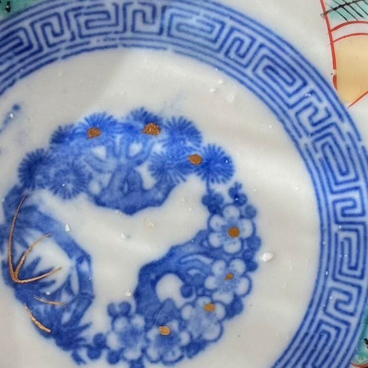 金彩 色絵 なます皿 富士◆明治後期から大正期