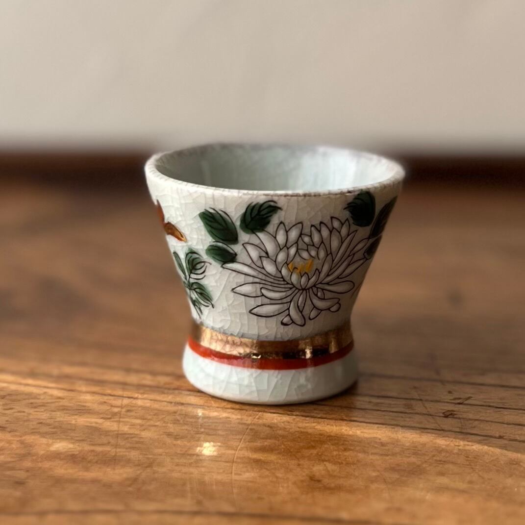 菊の酒器 九谷焼 徳利と盃2杯のセット