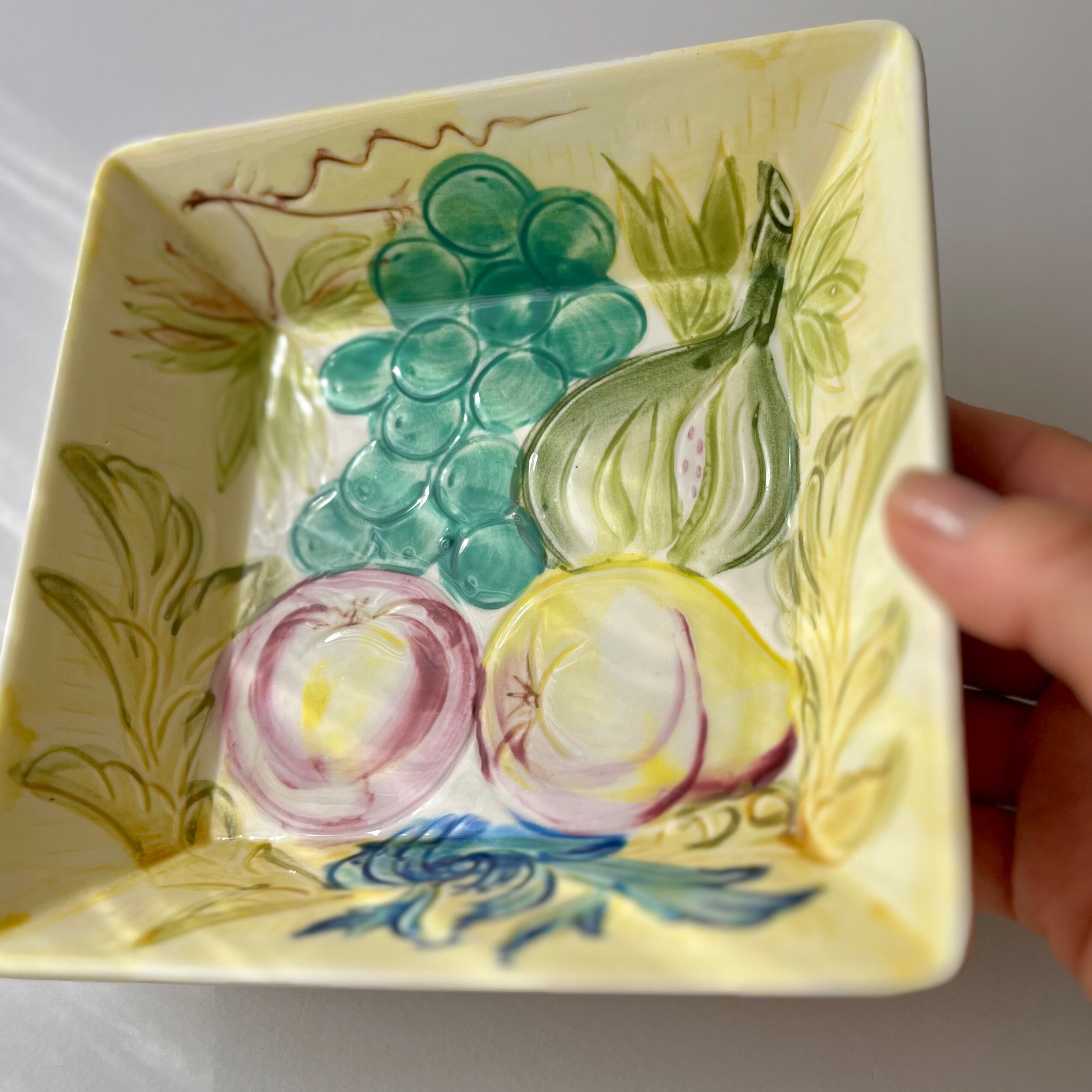 【レトロ◆フルーツ柄の四角深皿 ハンドペイント 双立製陶】