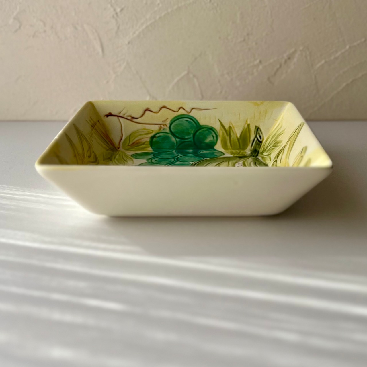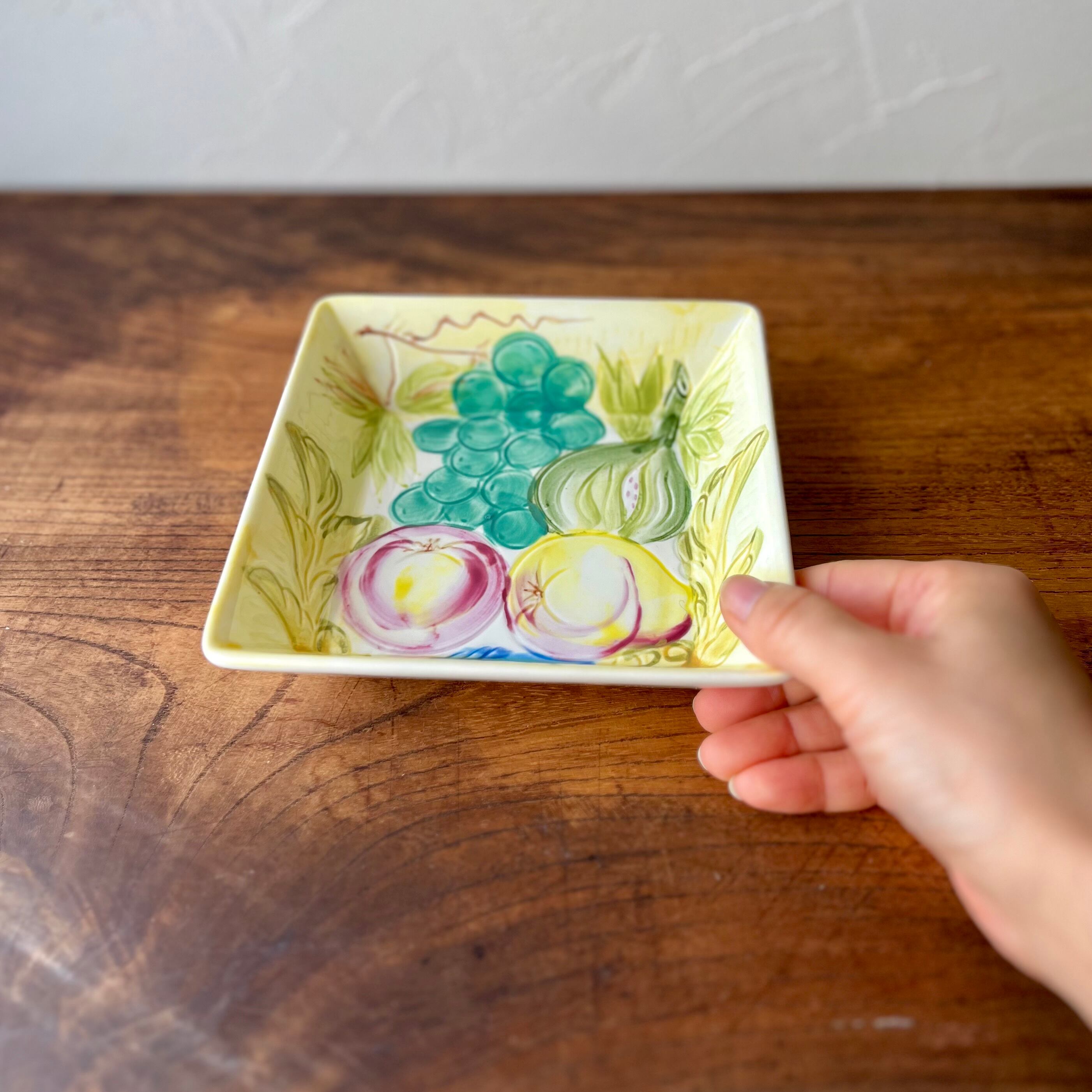 レトロ◆フルーツ柄の四角深皿 ハンドペイント 双立製陶
