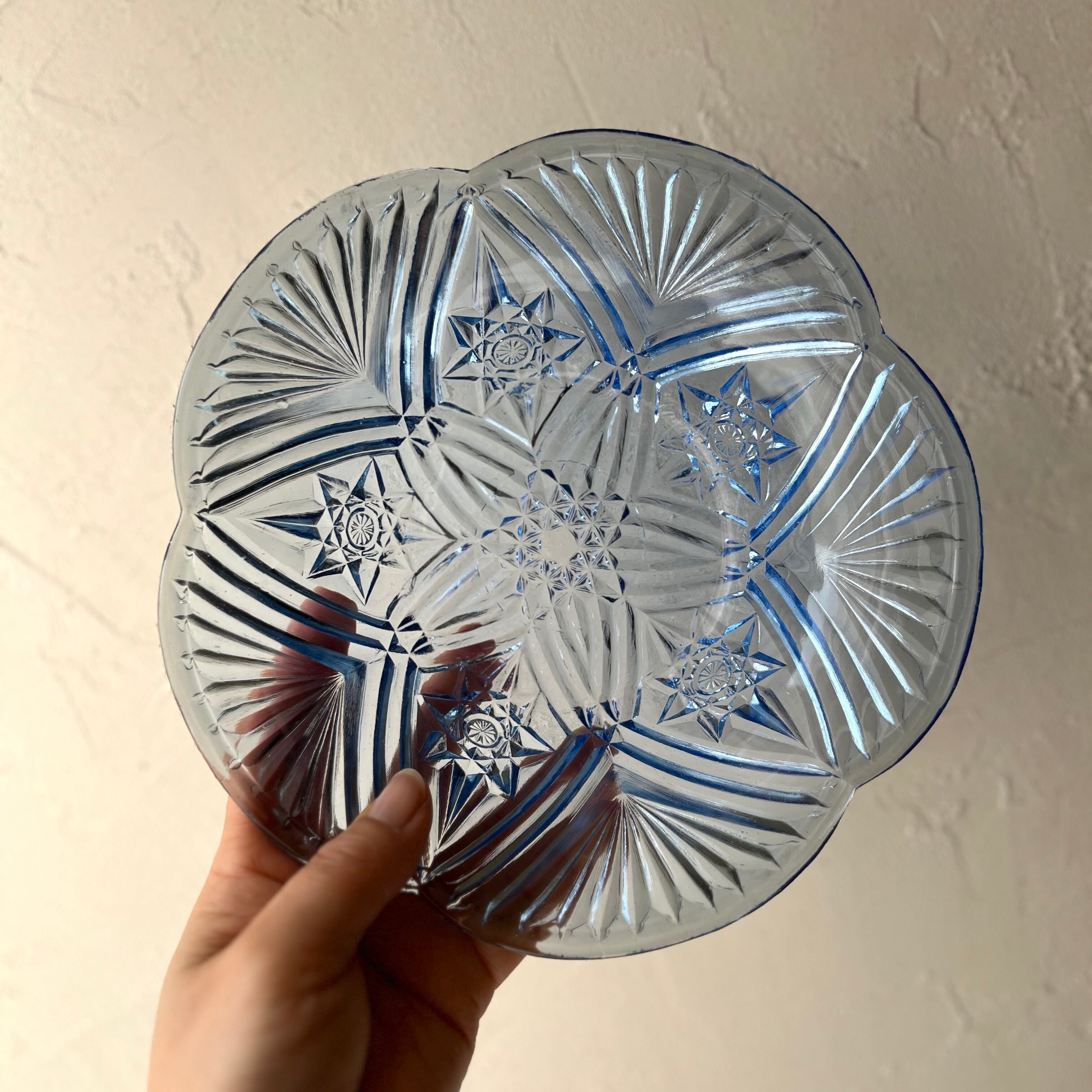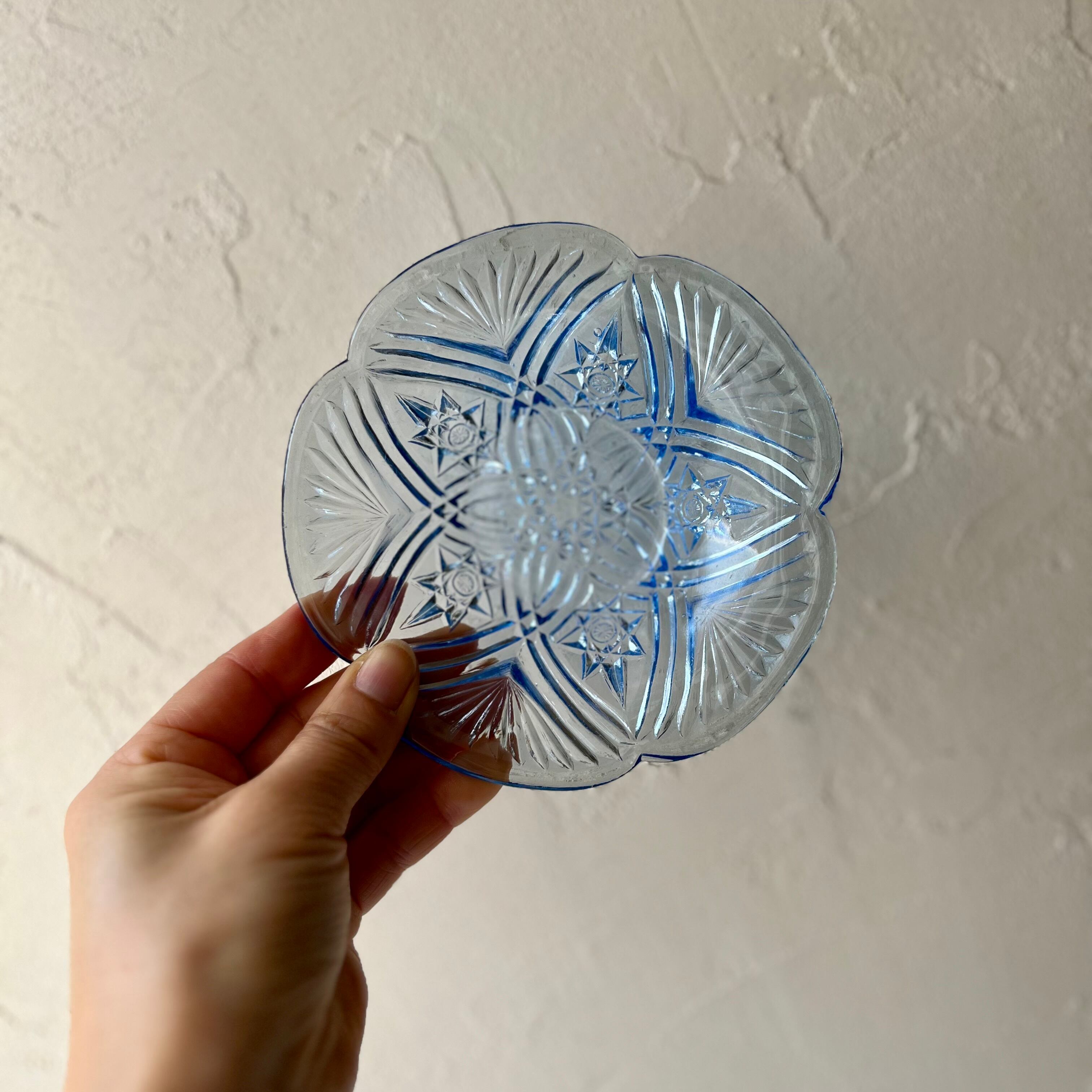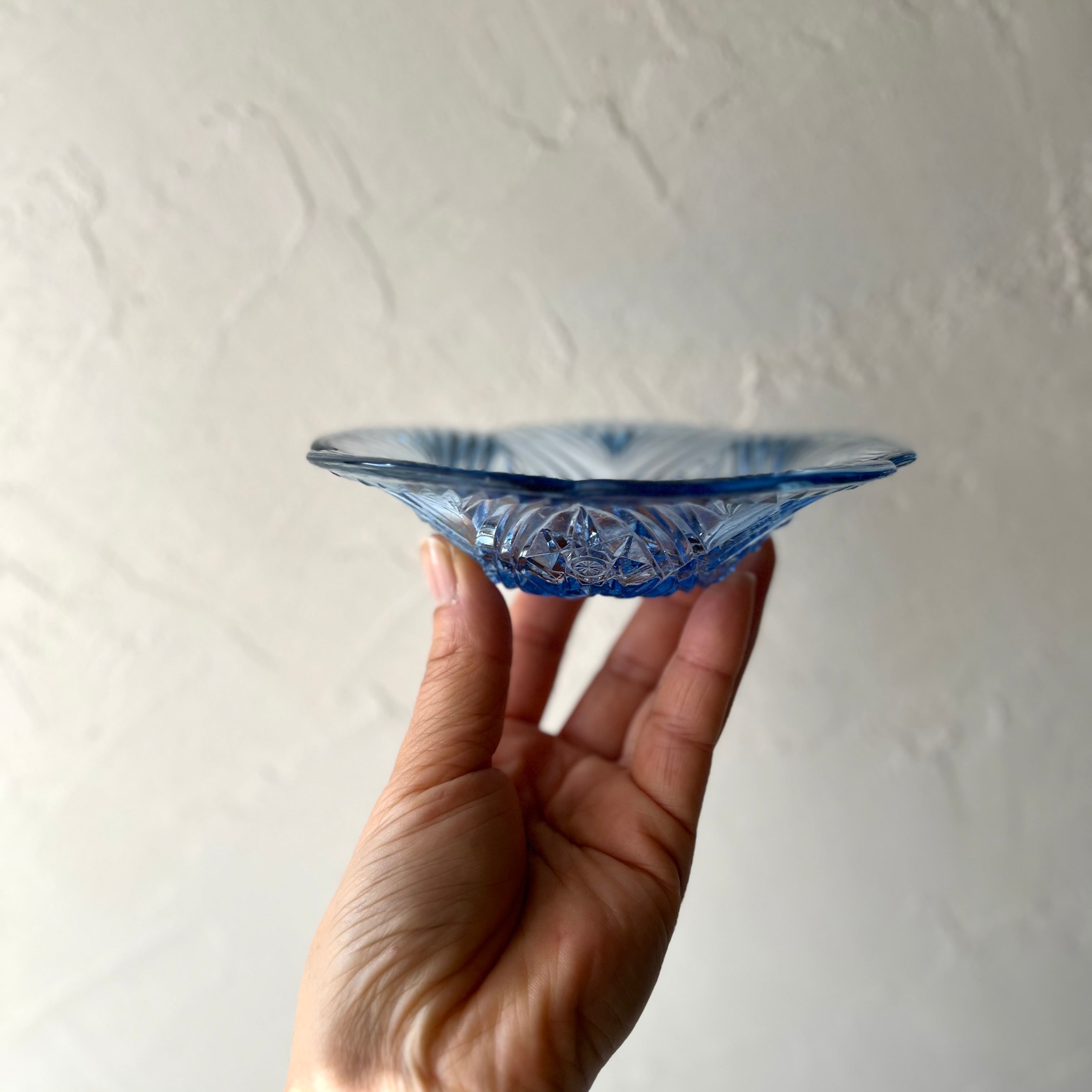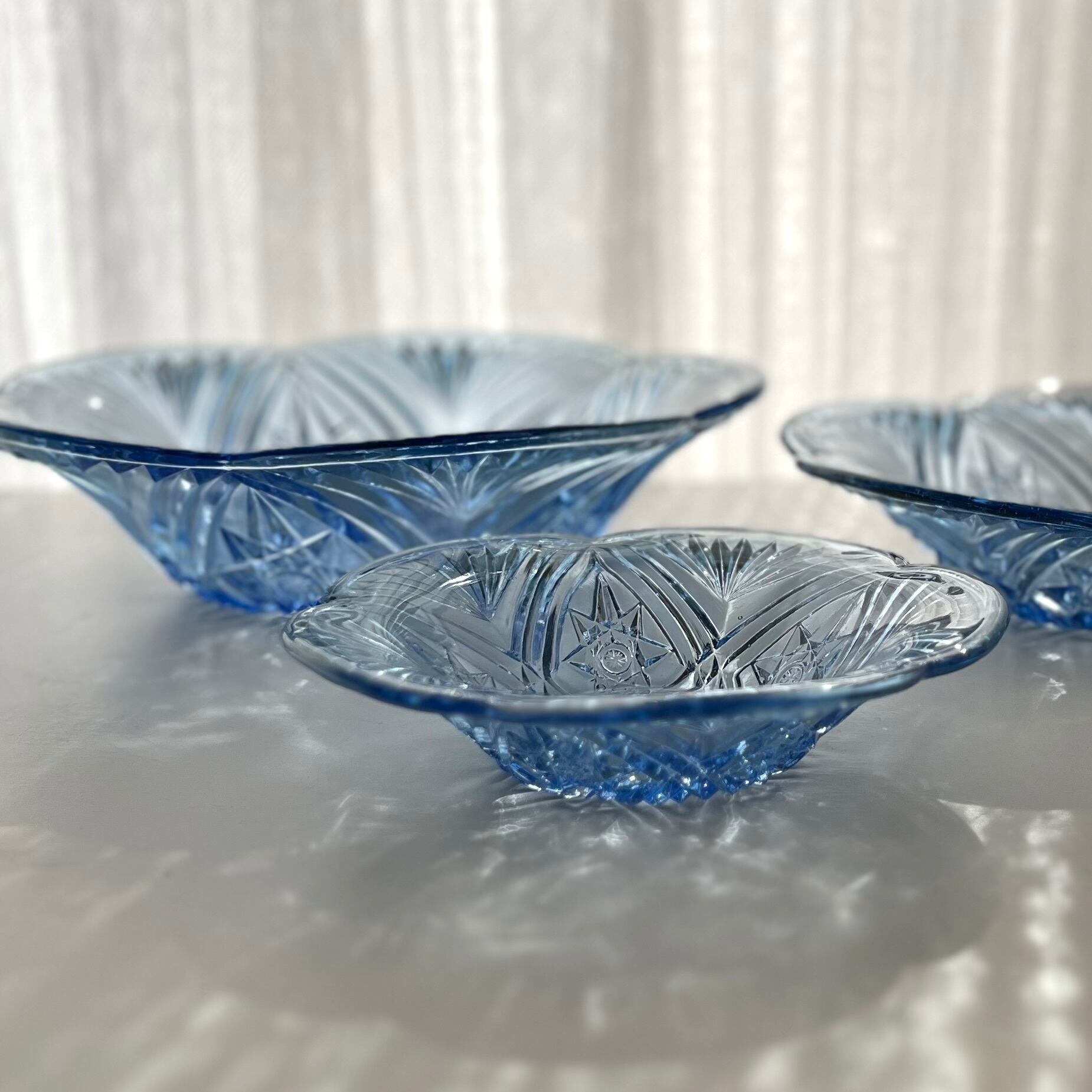 【青いガラスの器 サイズ違い3枚セット 輪花型】