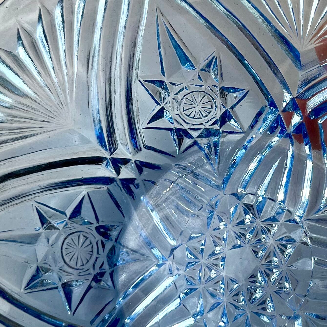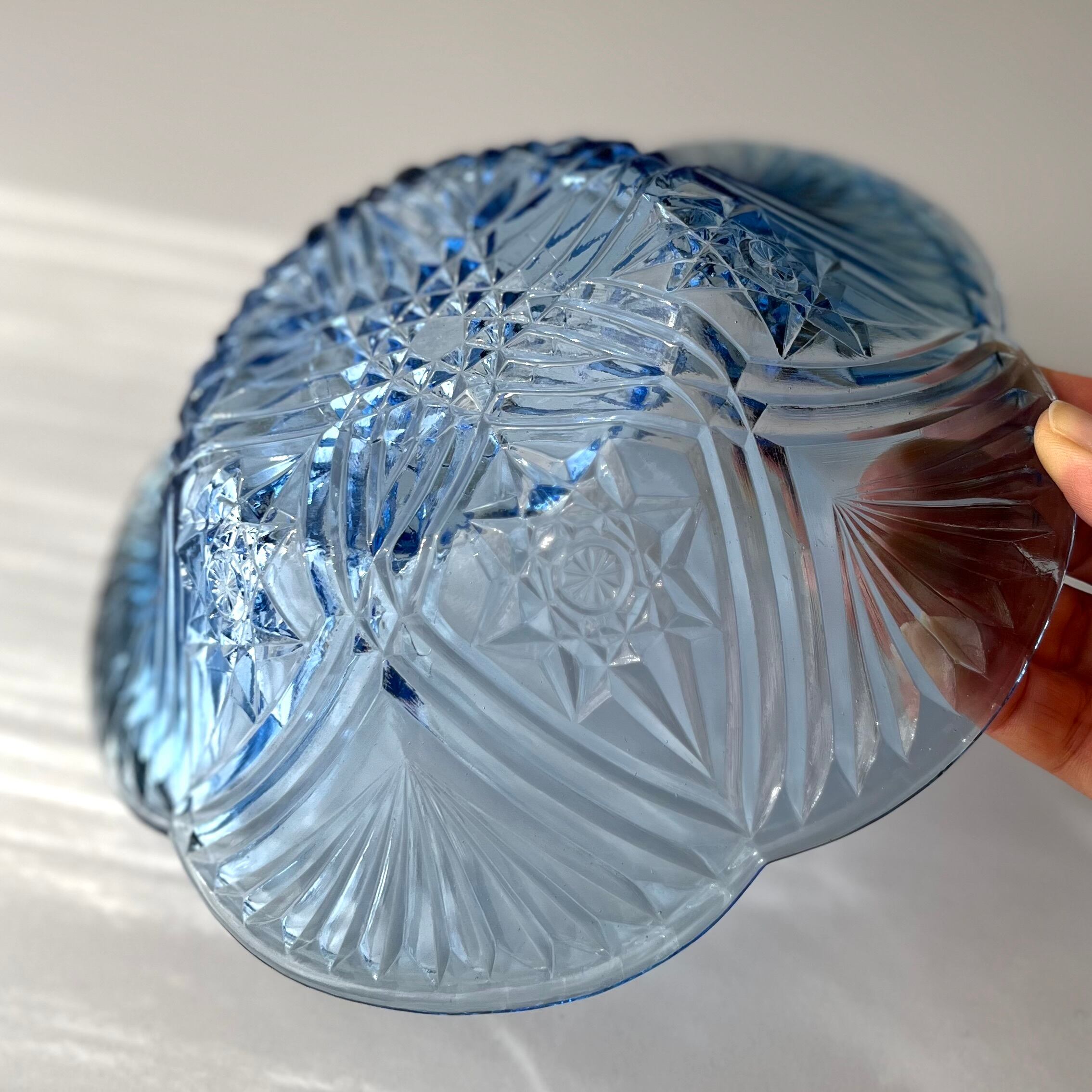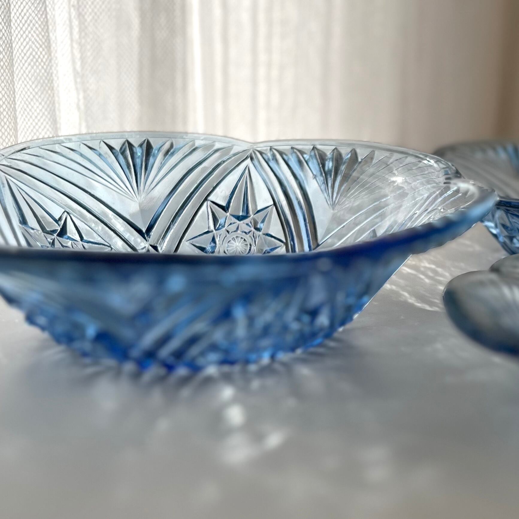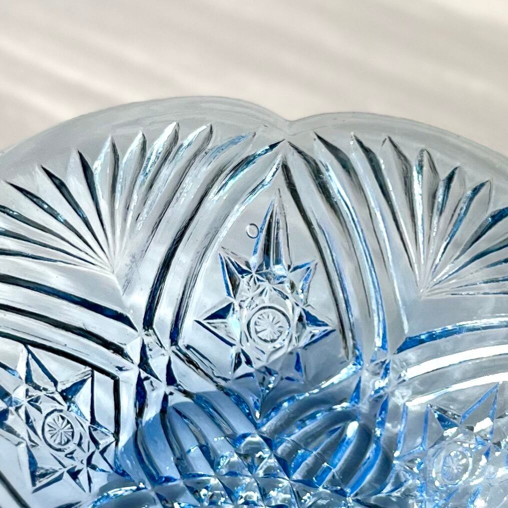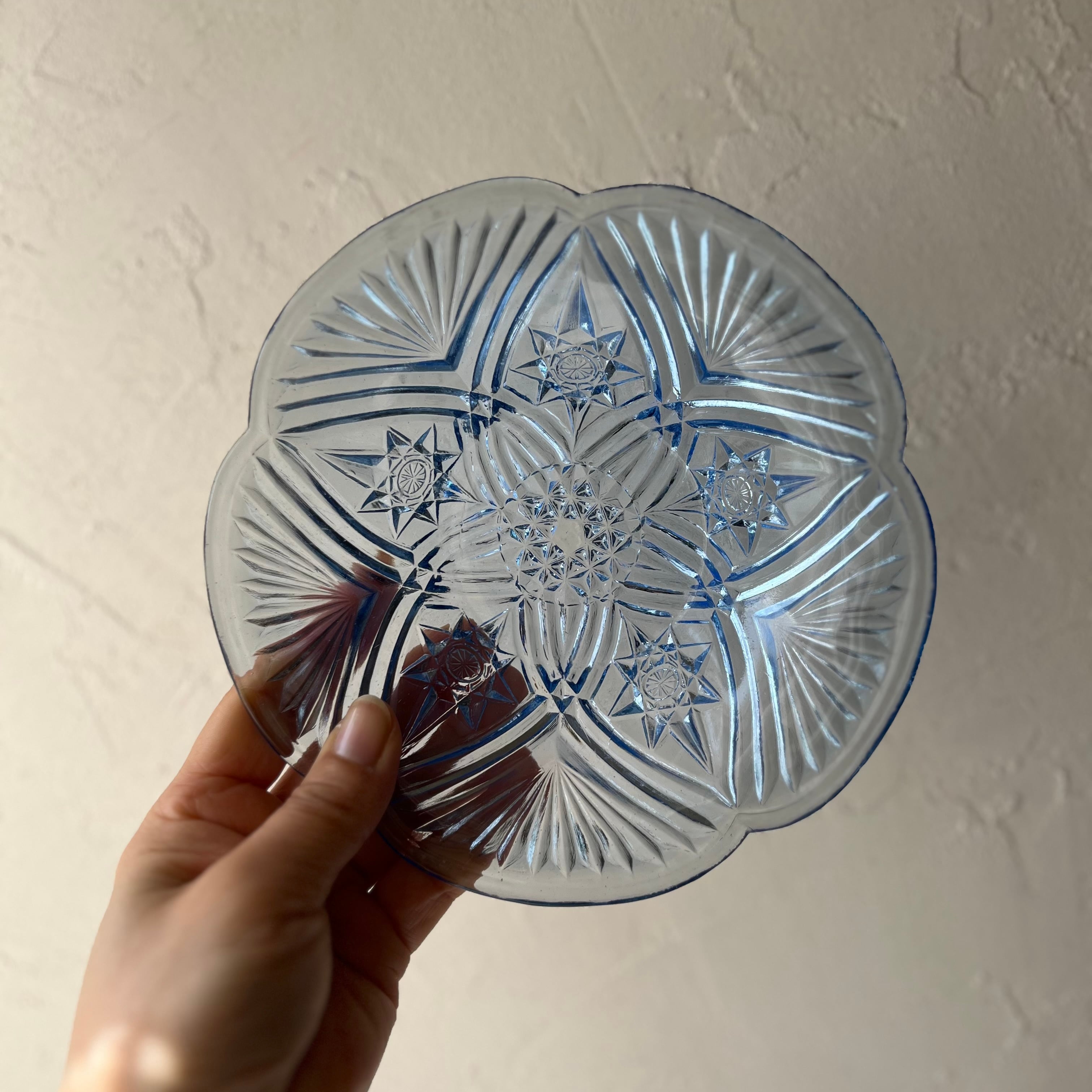 【青いガラスの器 サイズ違い3枚セット 輪花型】