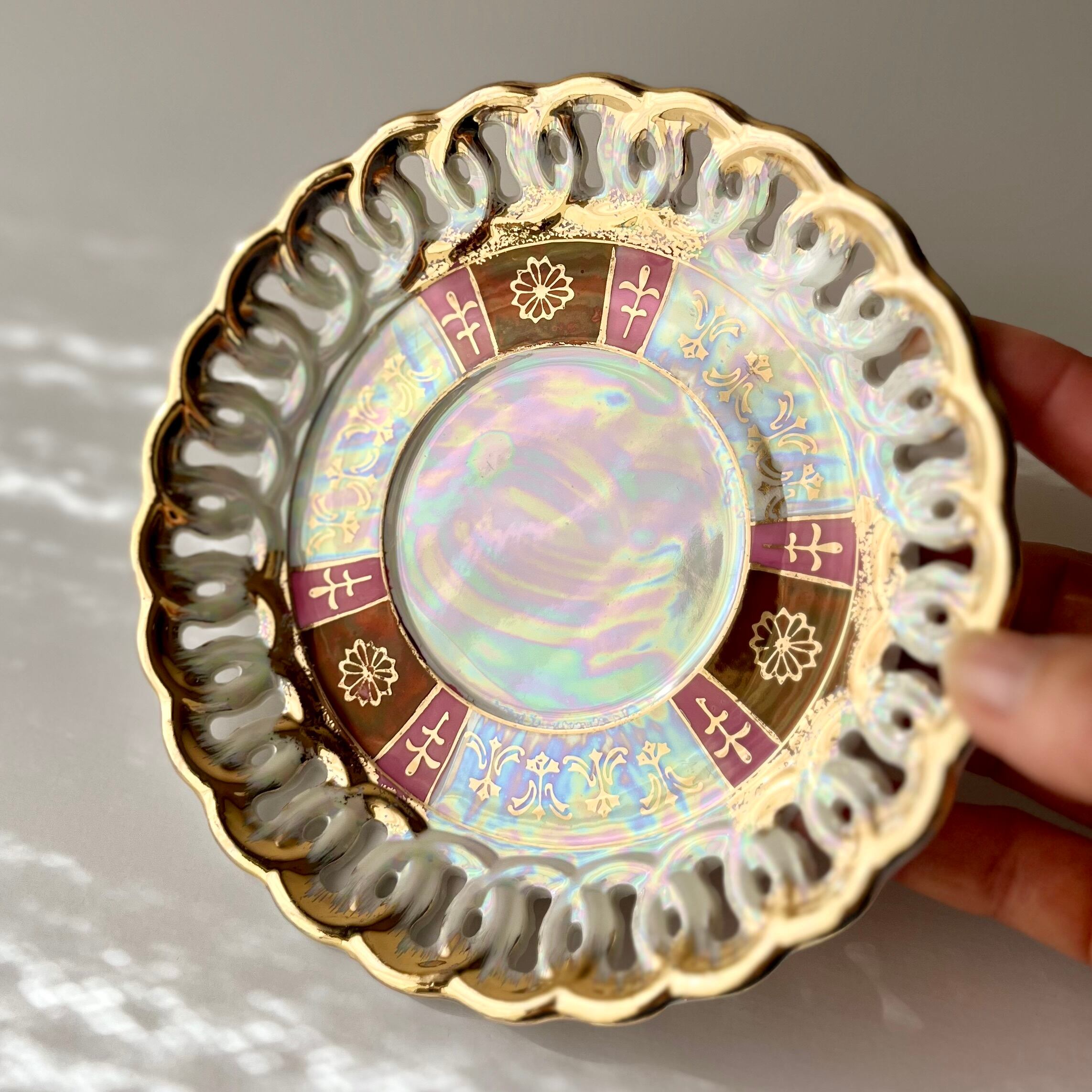 ・ソーサーを光にかざして撮影した画像は、実際の色のピンク色が映らなかった部分がございます。(画像10枚目)