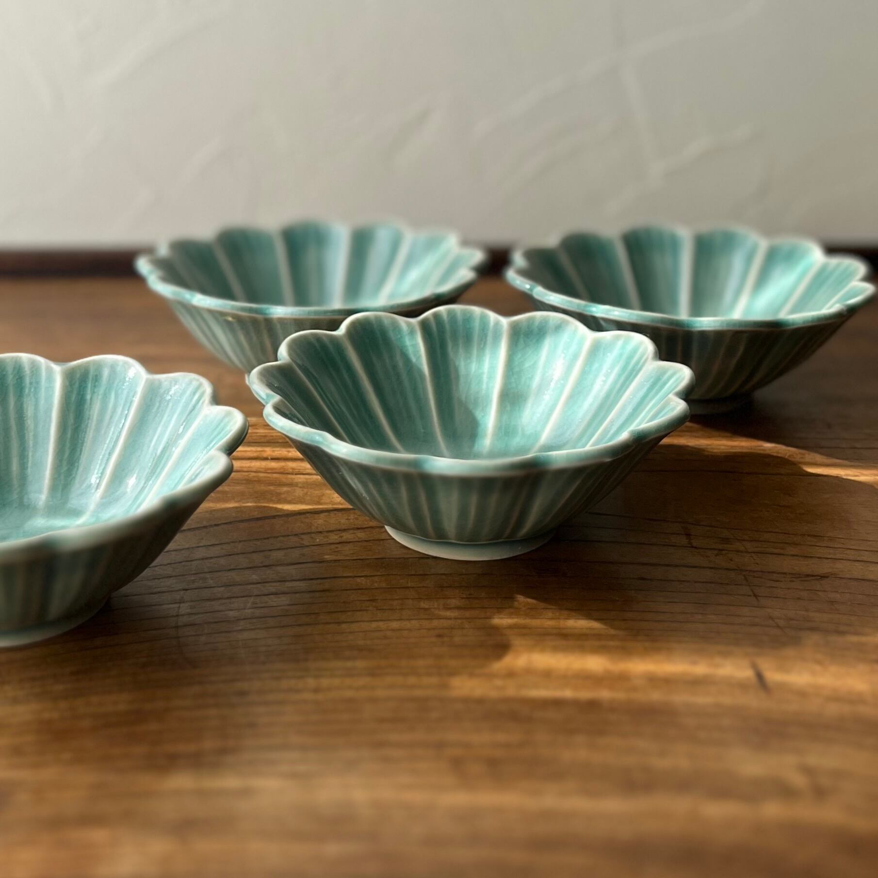 細かな貫入が施された菊型の小鉢4個セット。