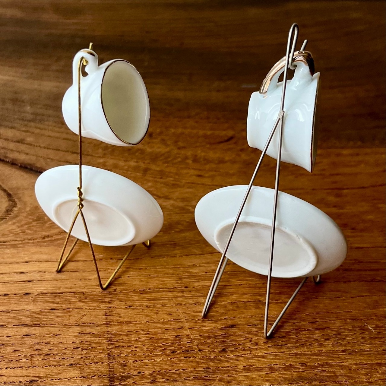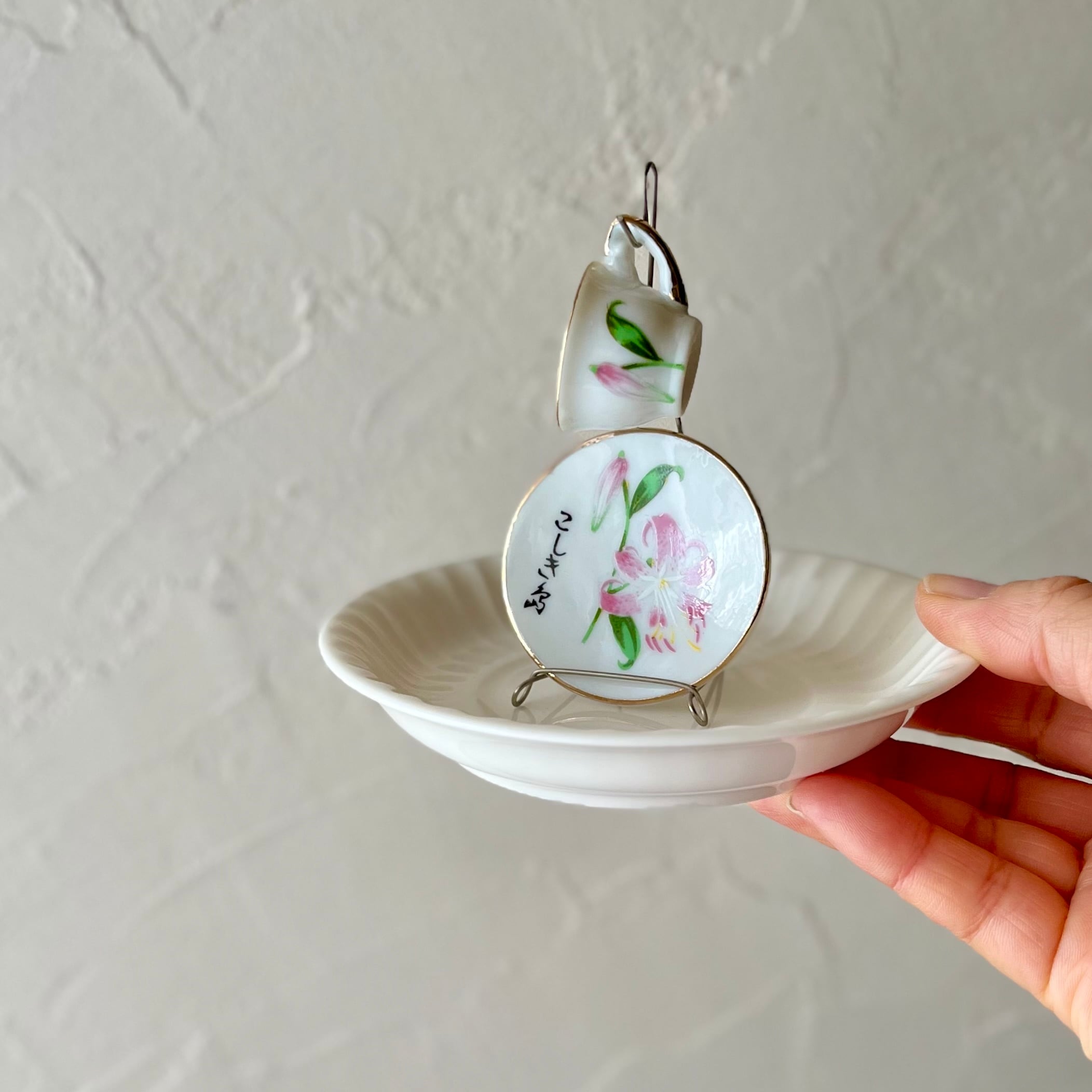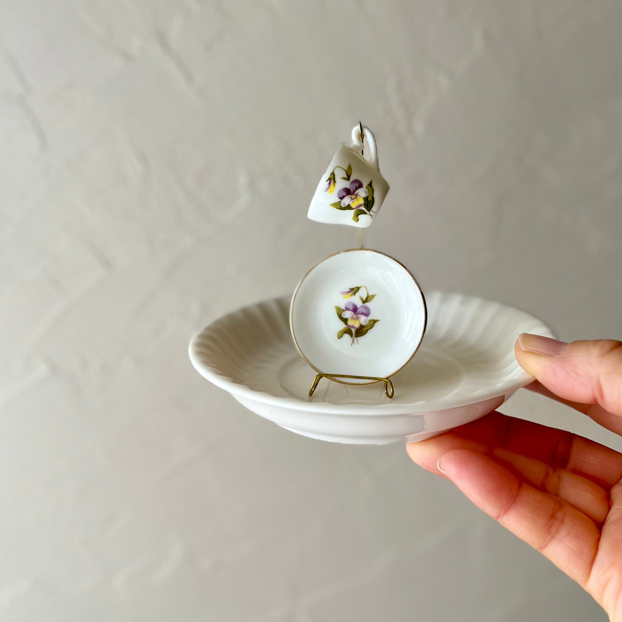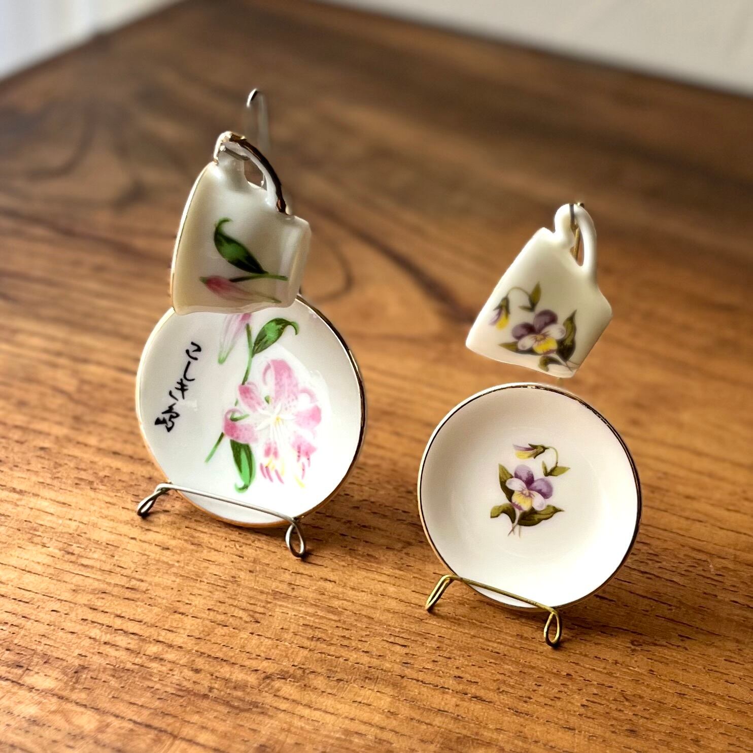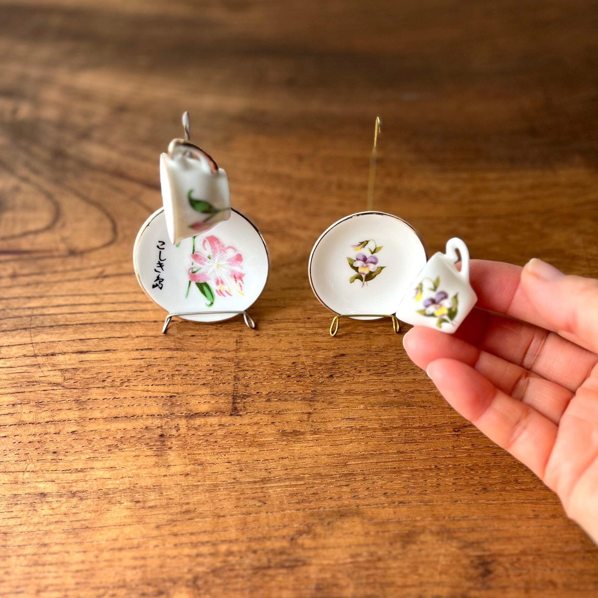 ミニチュア陶器◆ティーカップ2種セット ユリとスミレ