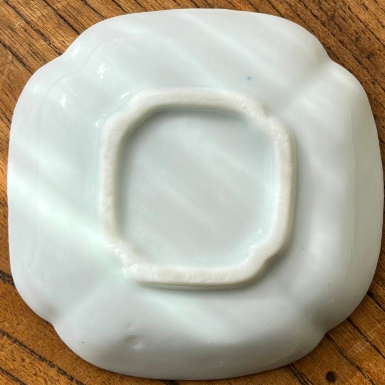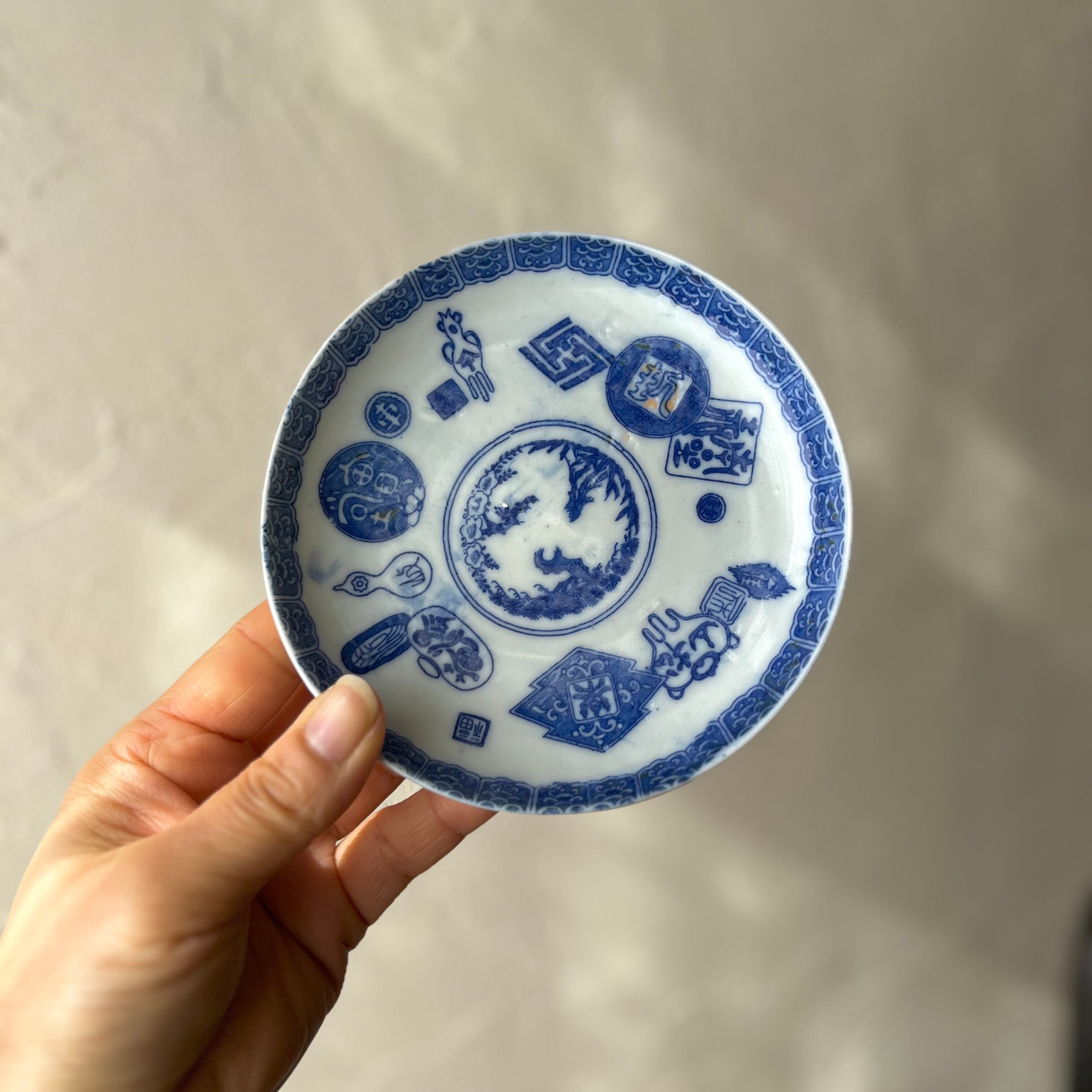 ・手作りの古いものです。印判印刷のズレや色滲み、釉薬の剥げ、裏面にニュウなど製作時の傷が見られます。