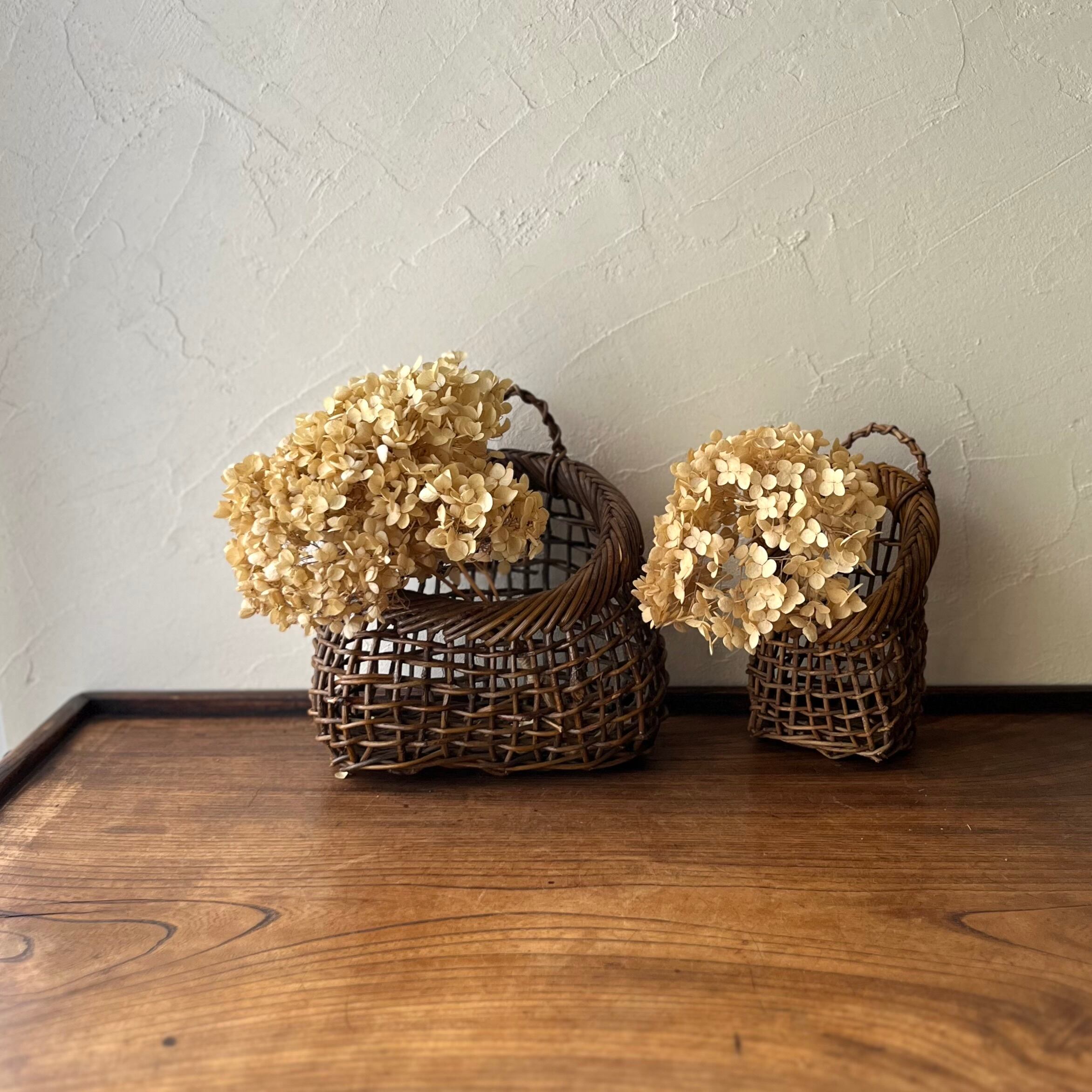 手作り花籠サイズ違いの2個セット。